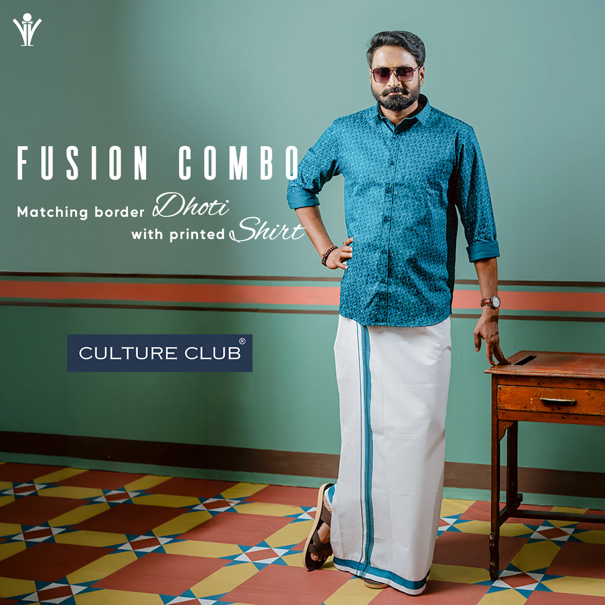 Men Silk Cream with 1" inch Jari Border Dhoti Shirt & Towel Set Subha Vaibhavaa