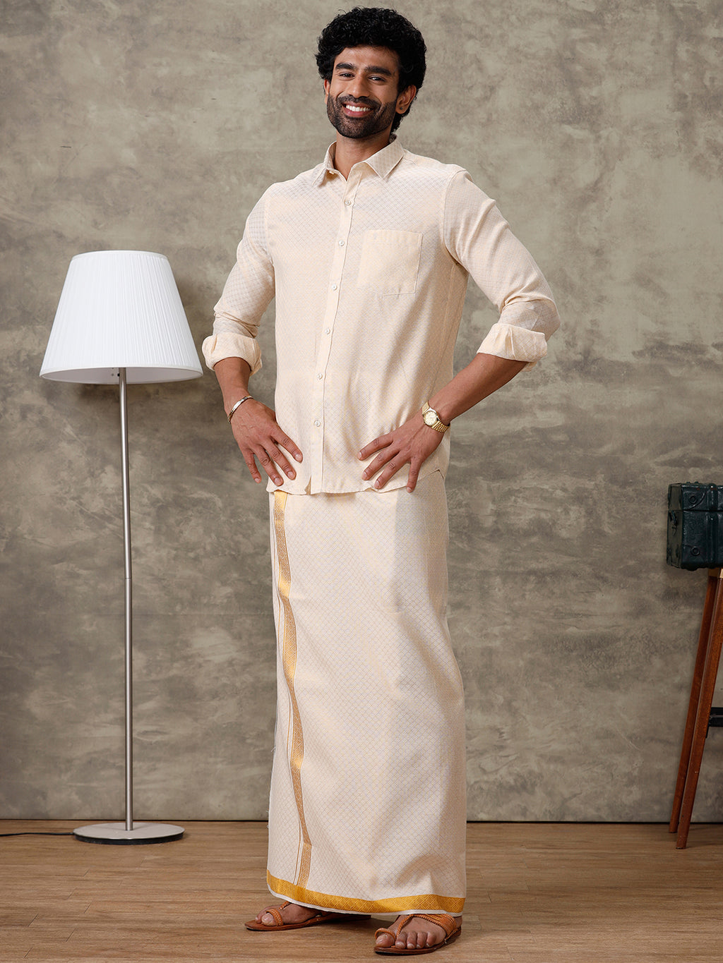 Couple Combo Shirt & Dhoti Set with Saree Gold GD13