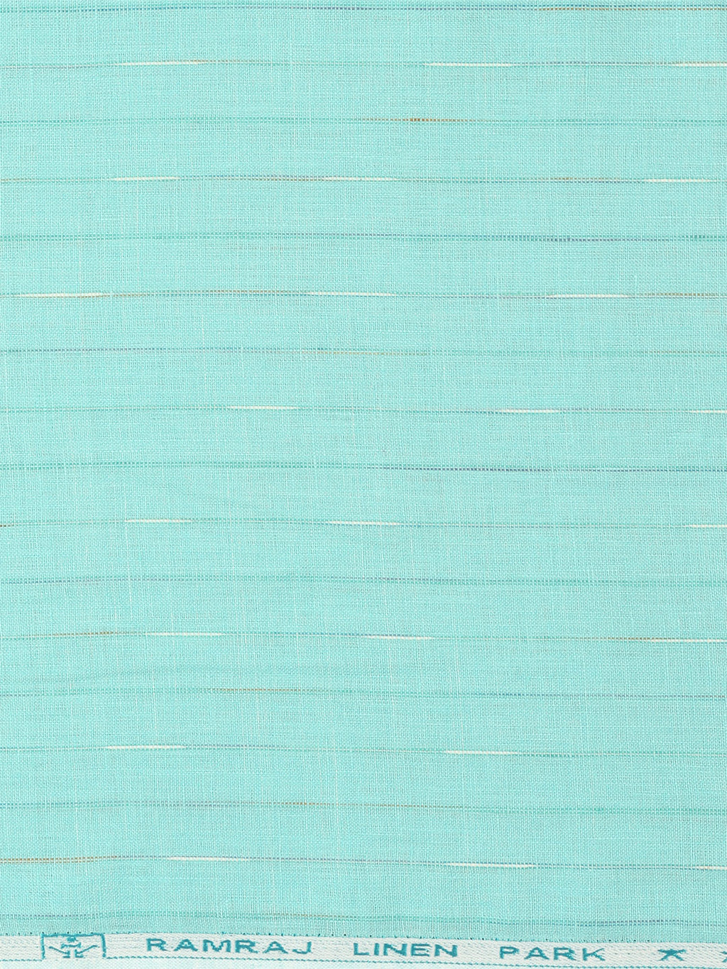 Men 100% Premium Linen Striped Blue Shirt Fabric Carlena
