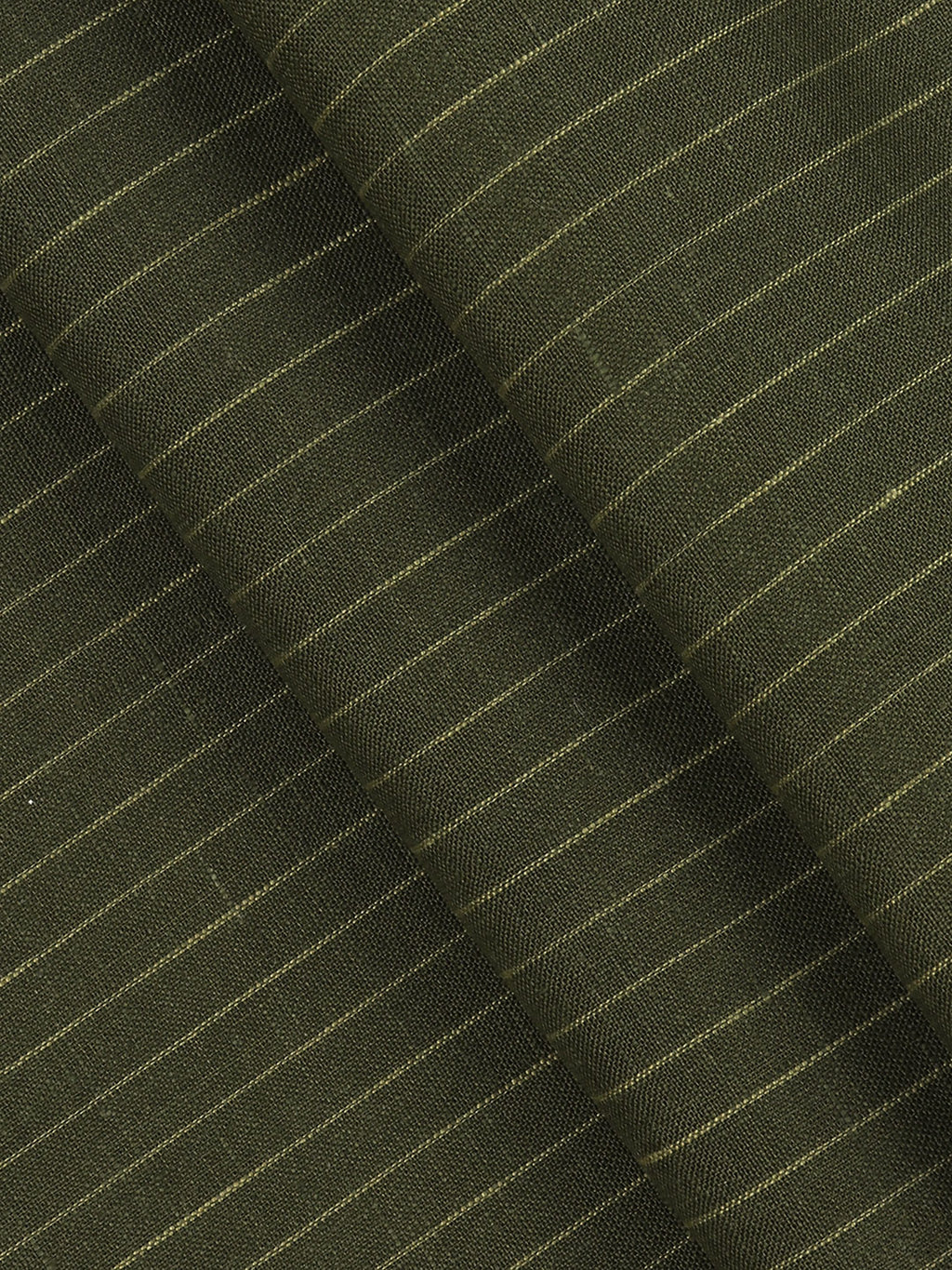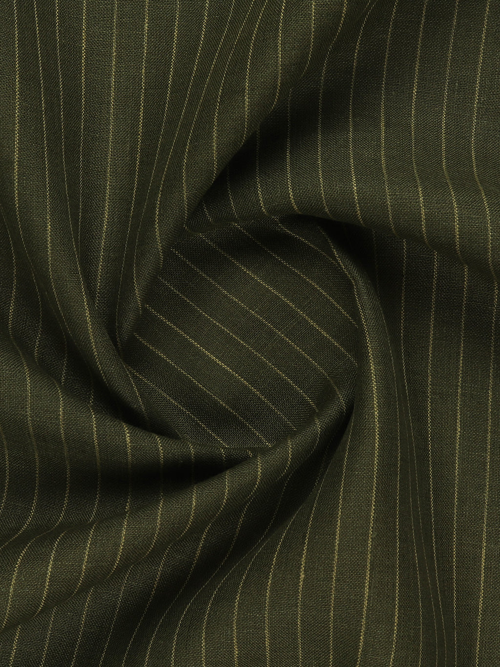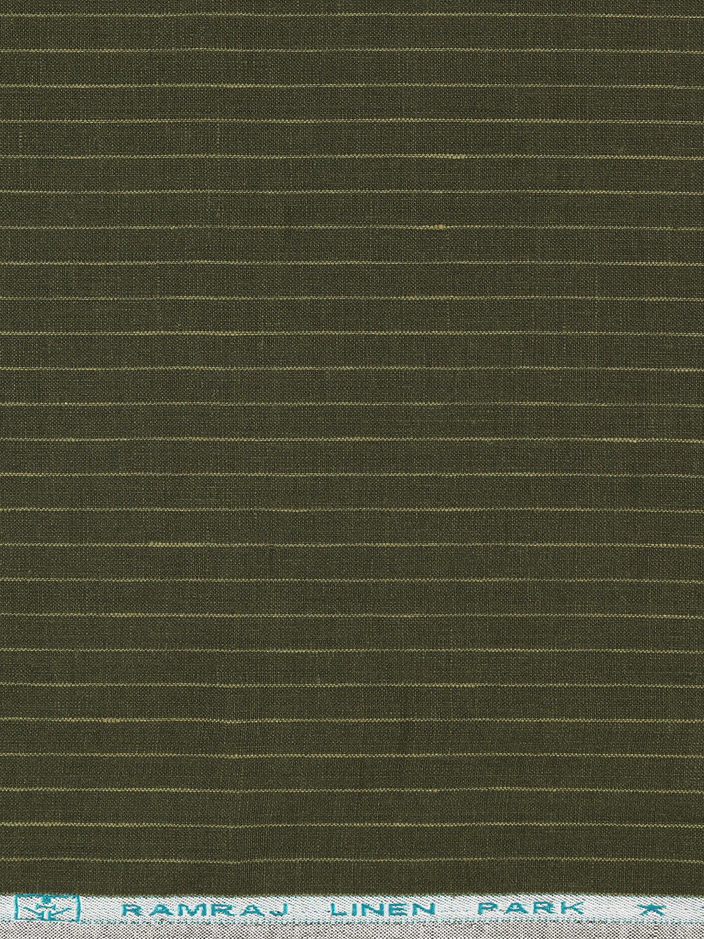 Men 100% Premium Linen Striped Dark Green Shirt Fabric Carlena