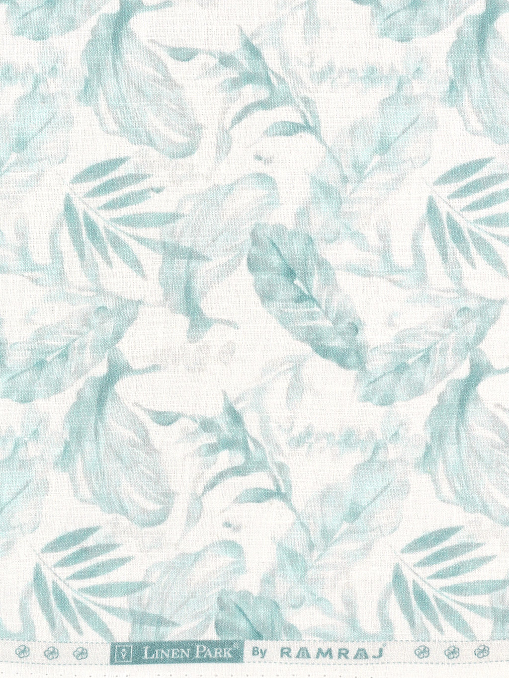 Men 100% Premium Linen White with Mint Blue Printed Shirt Fabric Fortuner