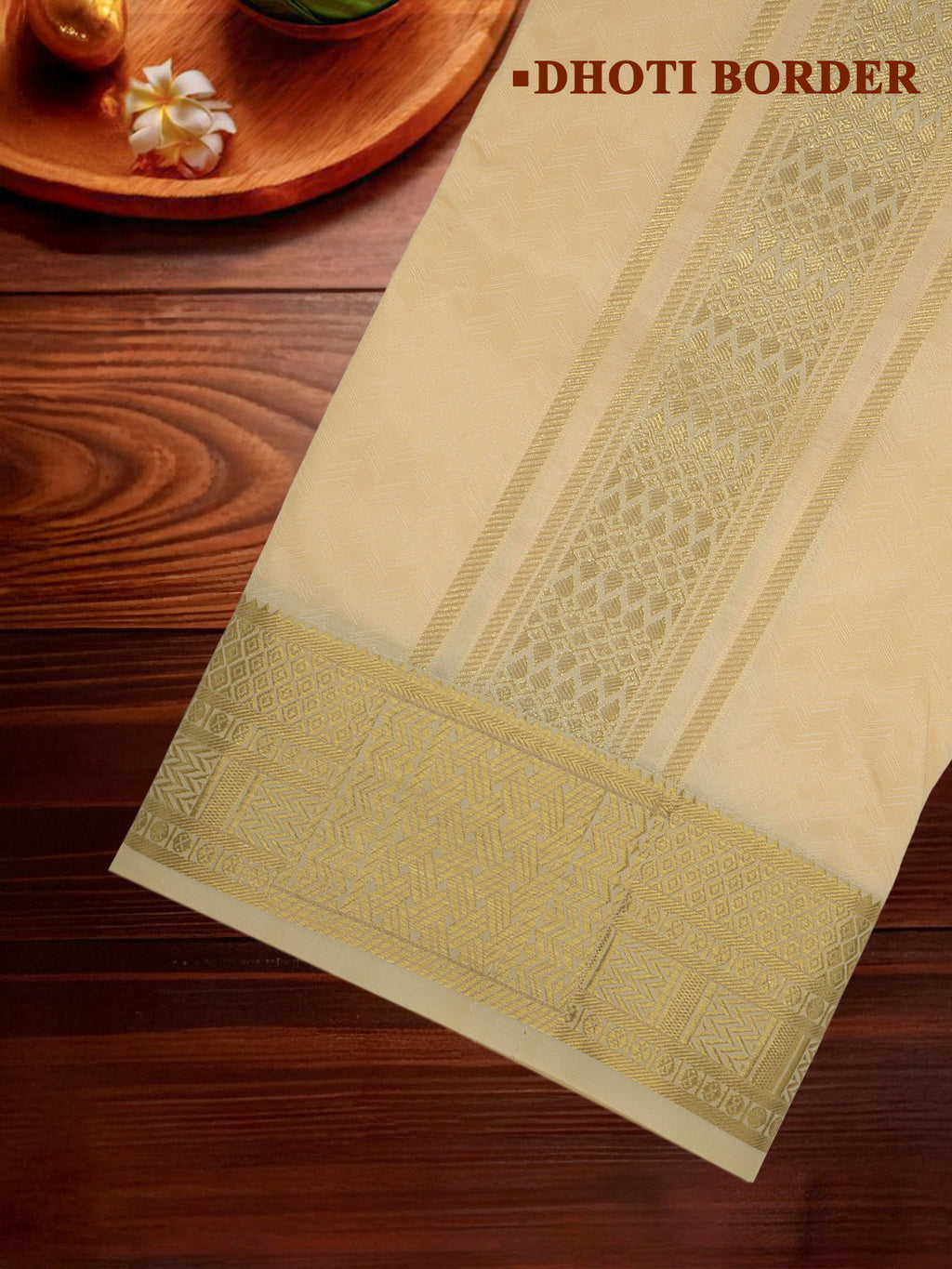 - Dhoti Border : Gold Fancy Jari Border