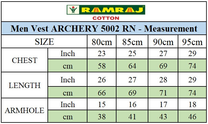 RAMRAJ Gym Vest RN Archery Vest Is Sweat Absorbent and skin friendly which keeps you fresh & clean round the clock. Made from Gold Compact Cotton Ribbed fabric. Most Suitable Pattern and Fabric Flexibility for Exercise and Gym Work Outs. Designed specially to give out maximum comfort. The neck and armholes of this vest for men are strengthened with binding for durability. It is designed with a clean-finished bottom hem for style and contoured armholes for ease of movement.