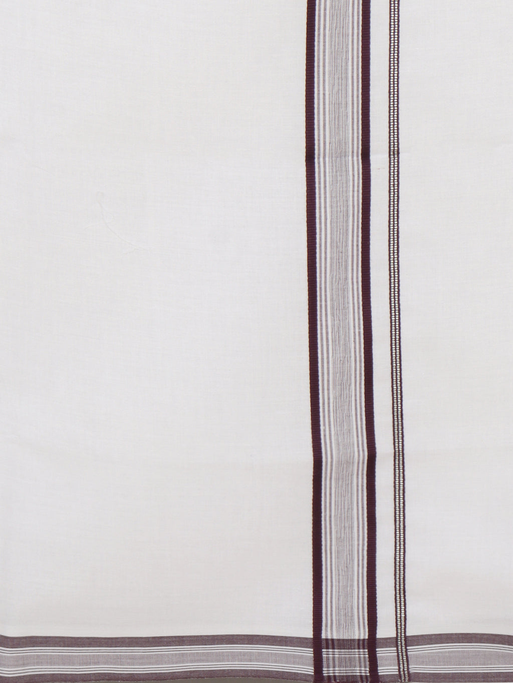 Men 100% Cotton Single Layer White Dhoti with Fancy Jari Border HW02