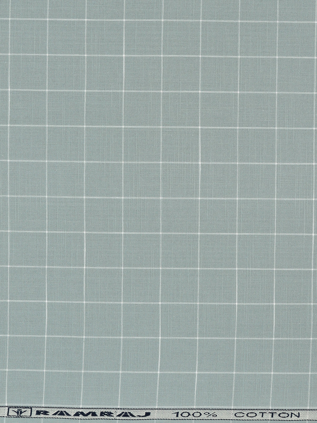 Men 100%Cotton Checks Shirt Fabric Bluish Grey Liberty Cotton