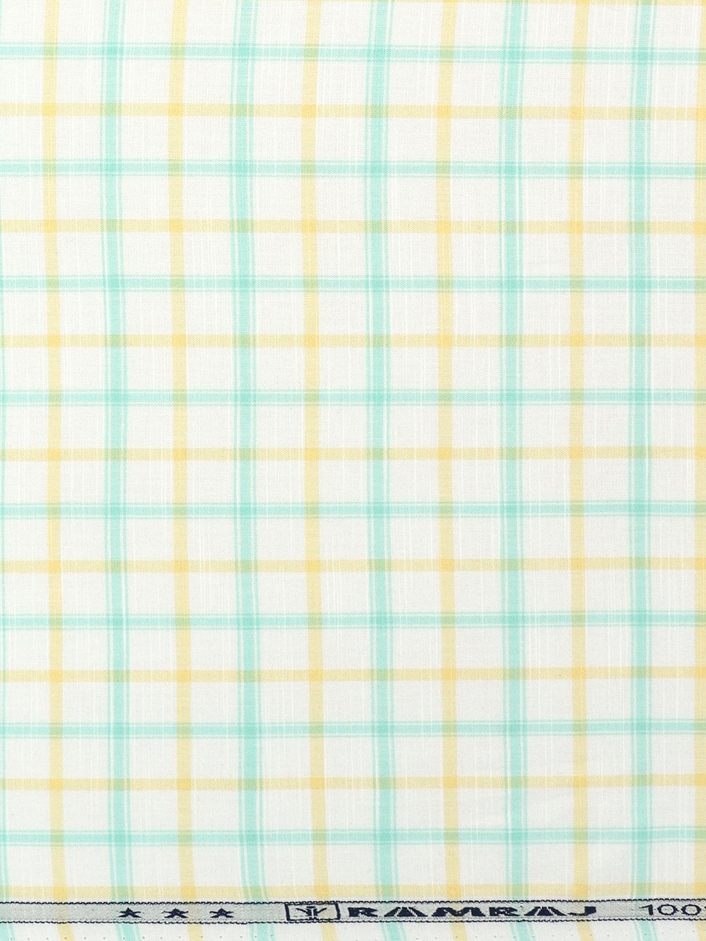 Men 100%Cotton Checks Shirt Fabric White with Yellow Liberty Cotton