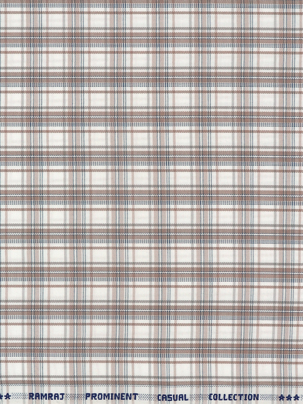 Men Cotton Rich Checked Shirt Fabric White with Brown High Style