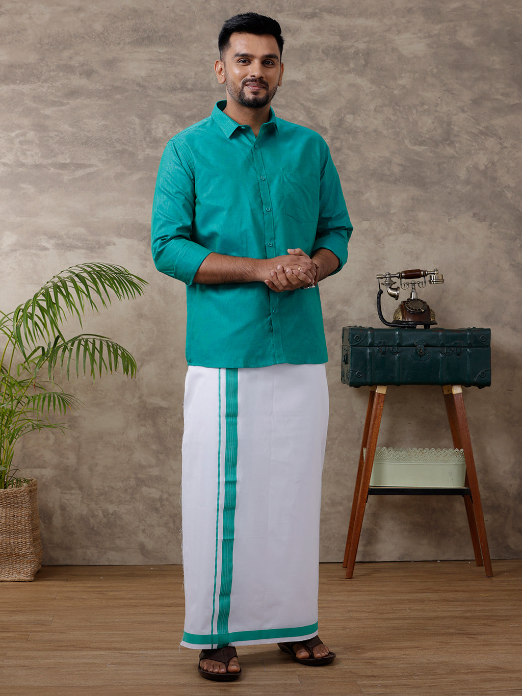 Couple Combo Shirt & Dhoti Set with Saree Green ST297