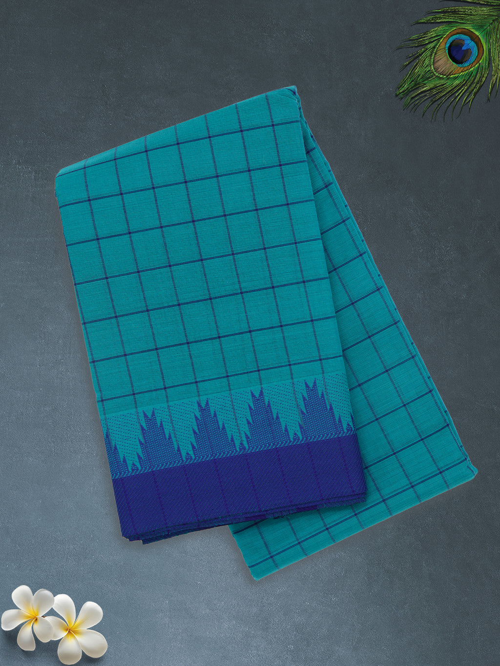 Women Blue Checks Pure Chettinad Cotton Saree PCS226