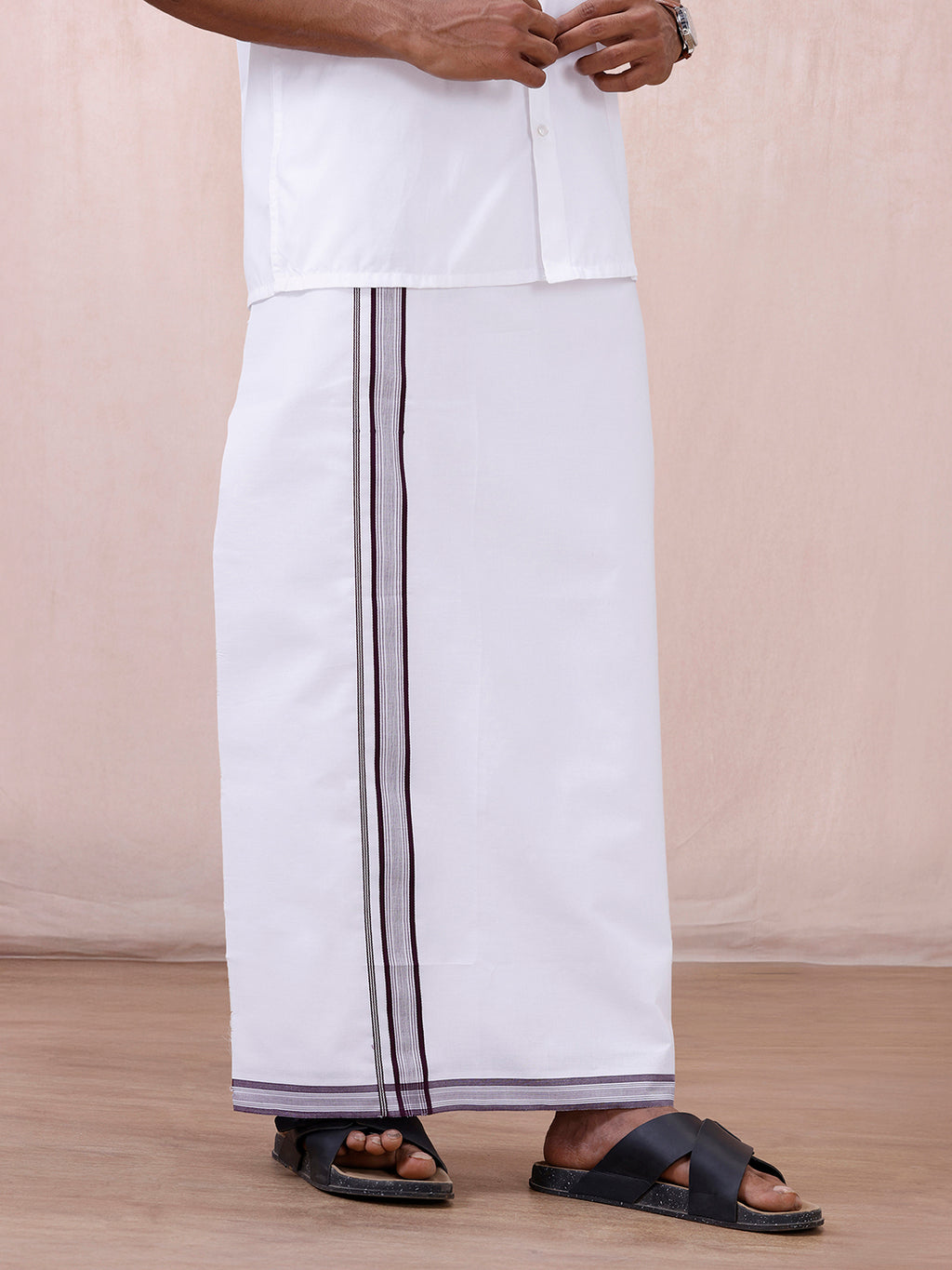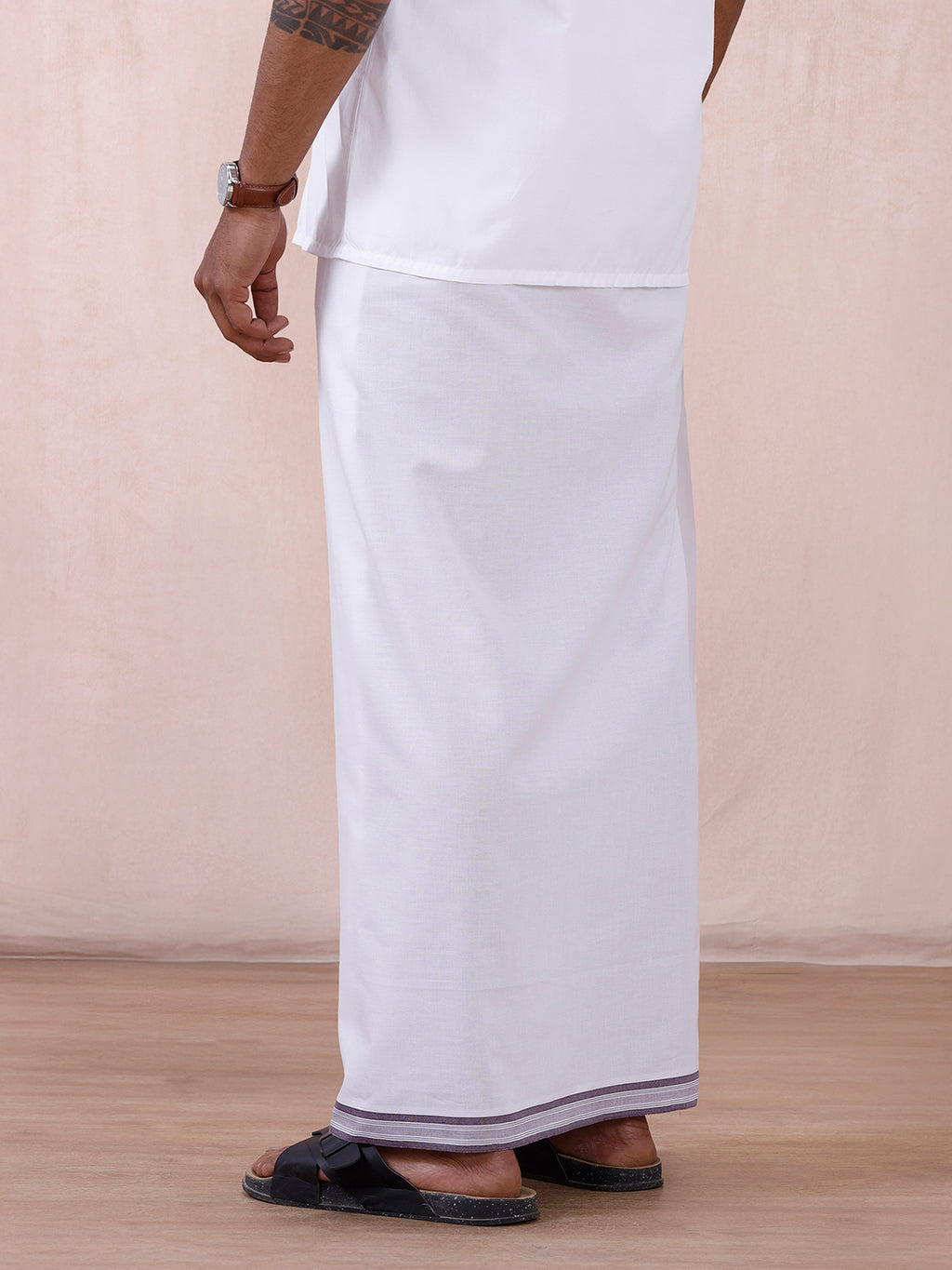 Men 100% Cotton Single Layer White Dhoti with Fancy Jari Border HW02