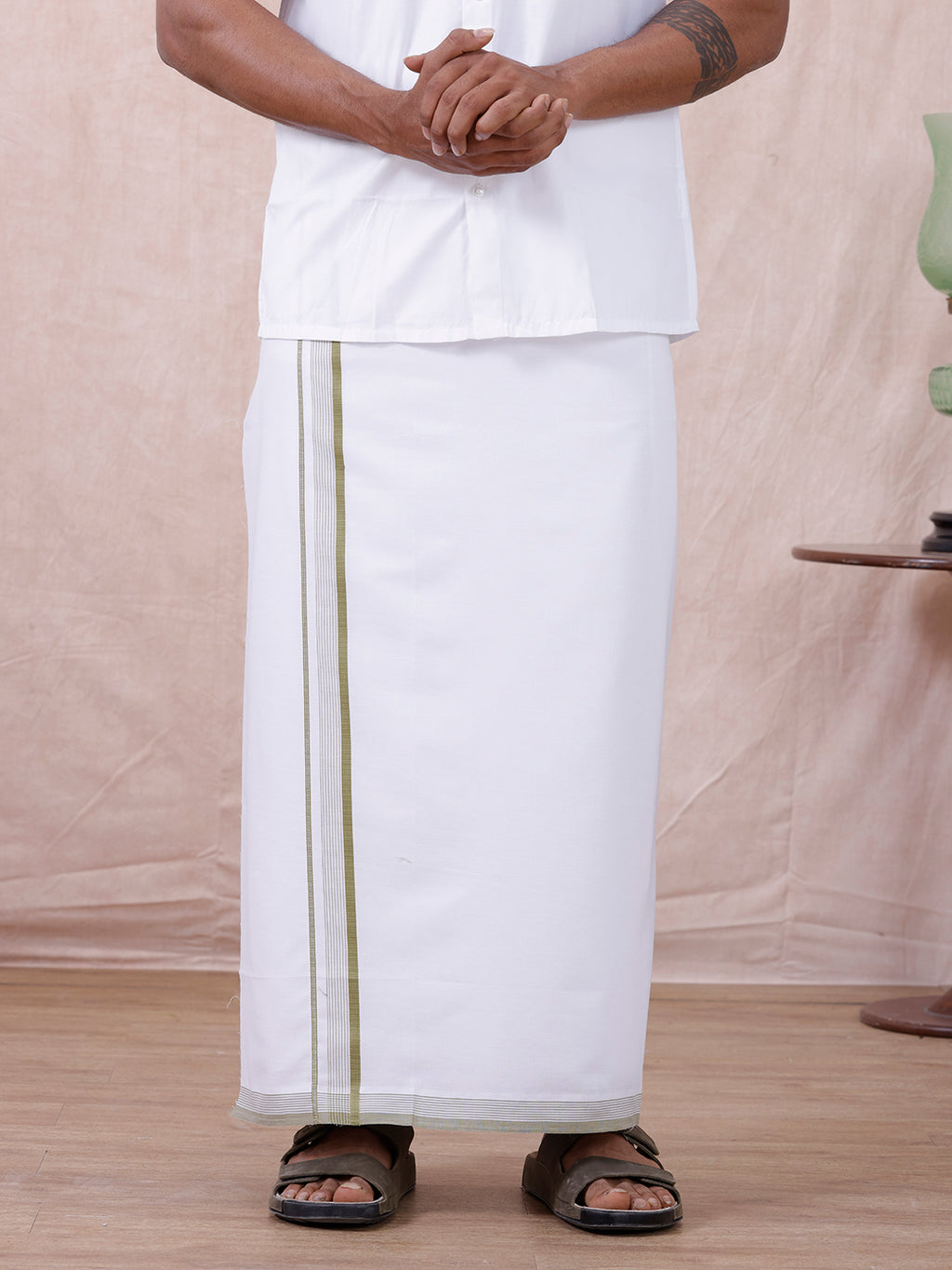 Men 100% Cotton Single Layer White Dhoti with Fancy Jari Border HW04