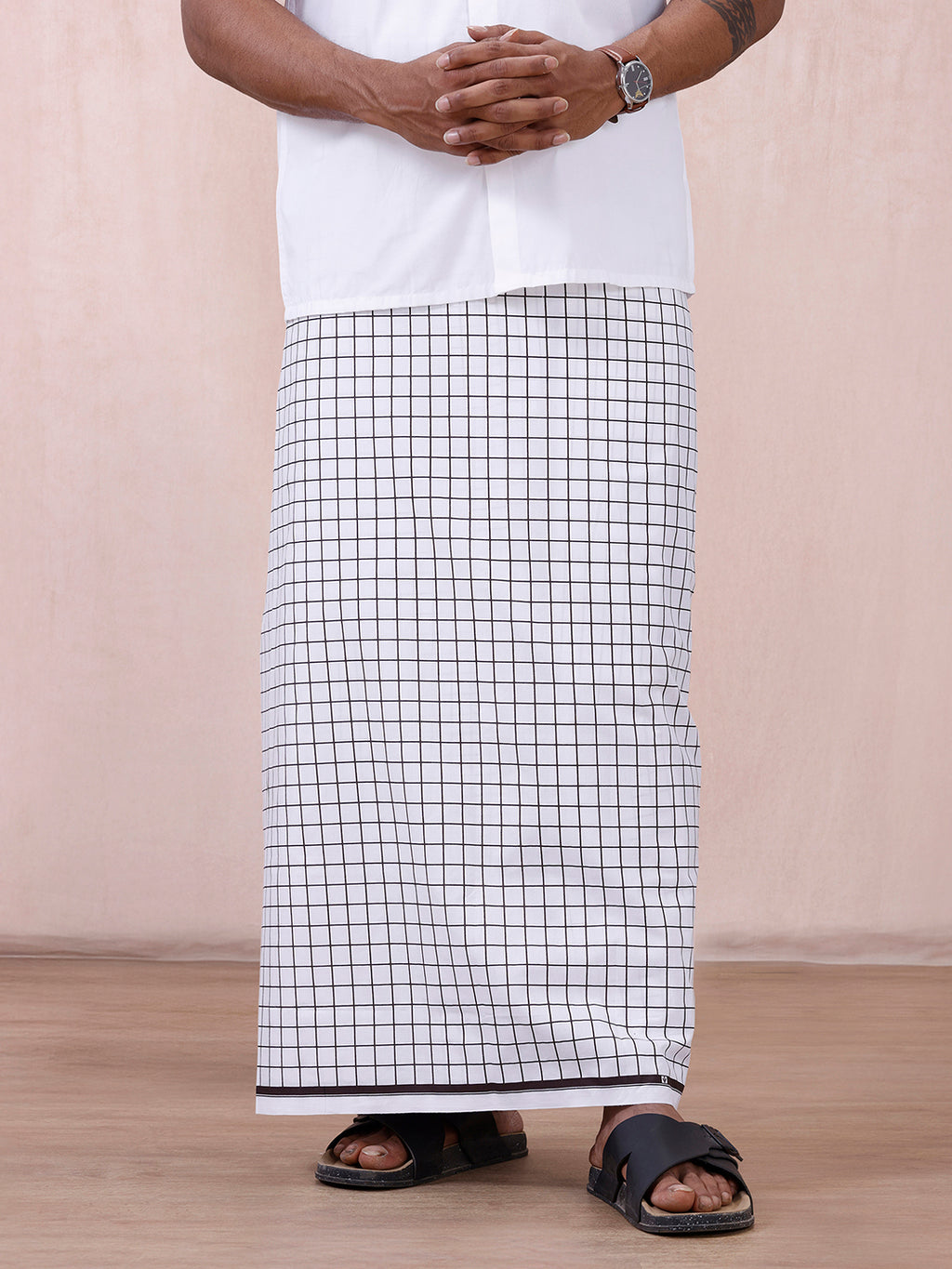 Men 100% Cotton Single Layer White Lungi Shalimar