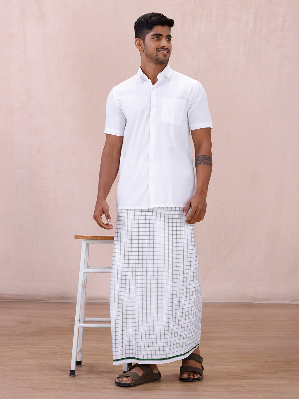 Men 100% Cotton Single Layer White Stitched Lungi Shalimar 2.25M