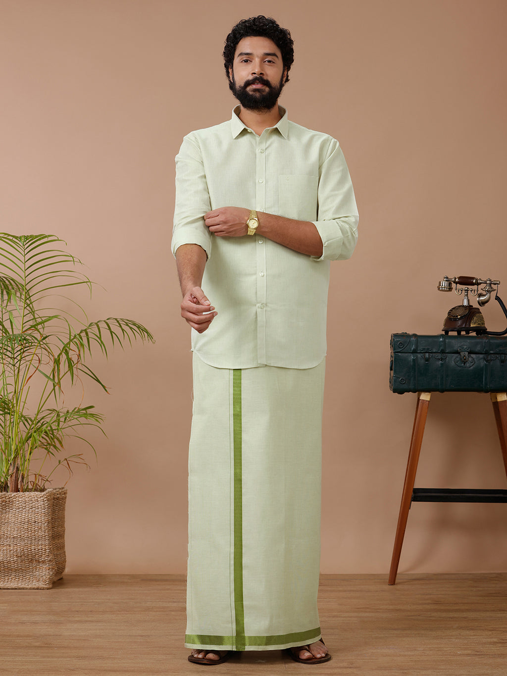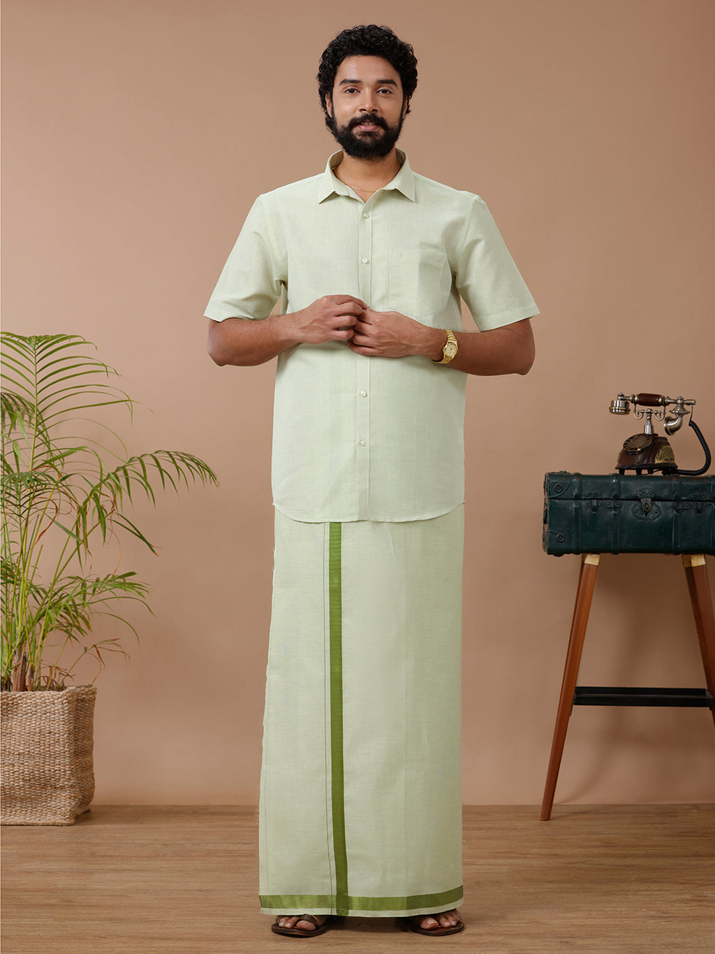 Couple Combo Shirt & Dhoti Set with Saree Green