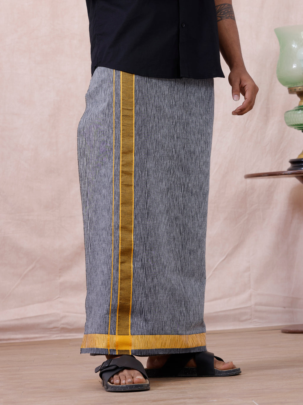 Men Cotton Blend Single Layer Grey Dhoti with Fancy Border Nitro Slub 03
