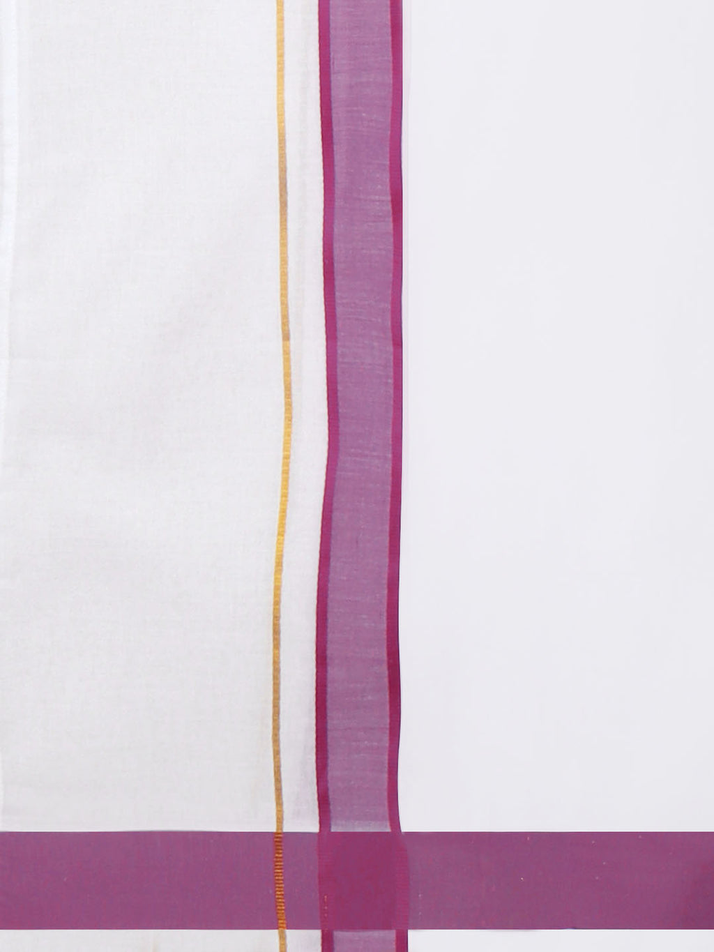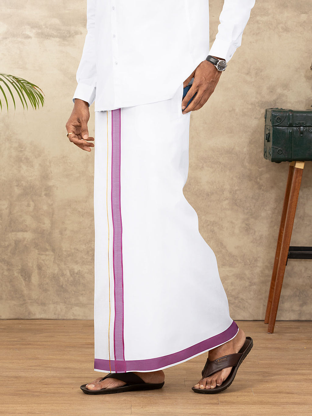 Men Cotton Blend Readymade Double Layer White Dhoti with Fancy Jari Border GFDA10