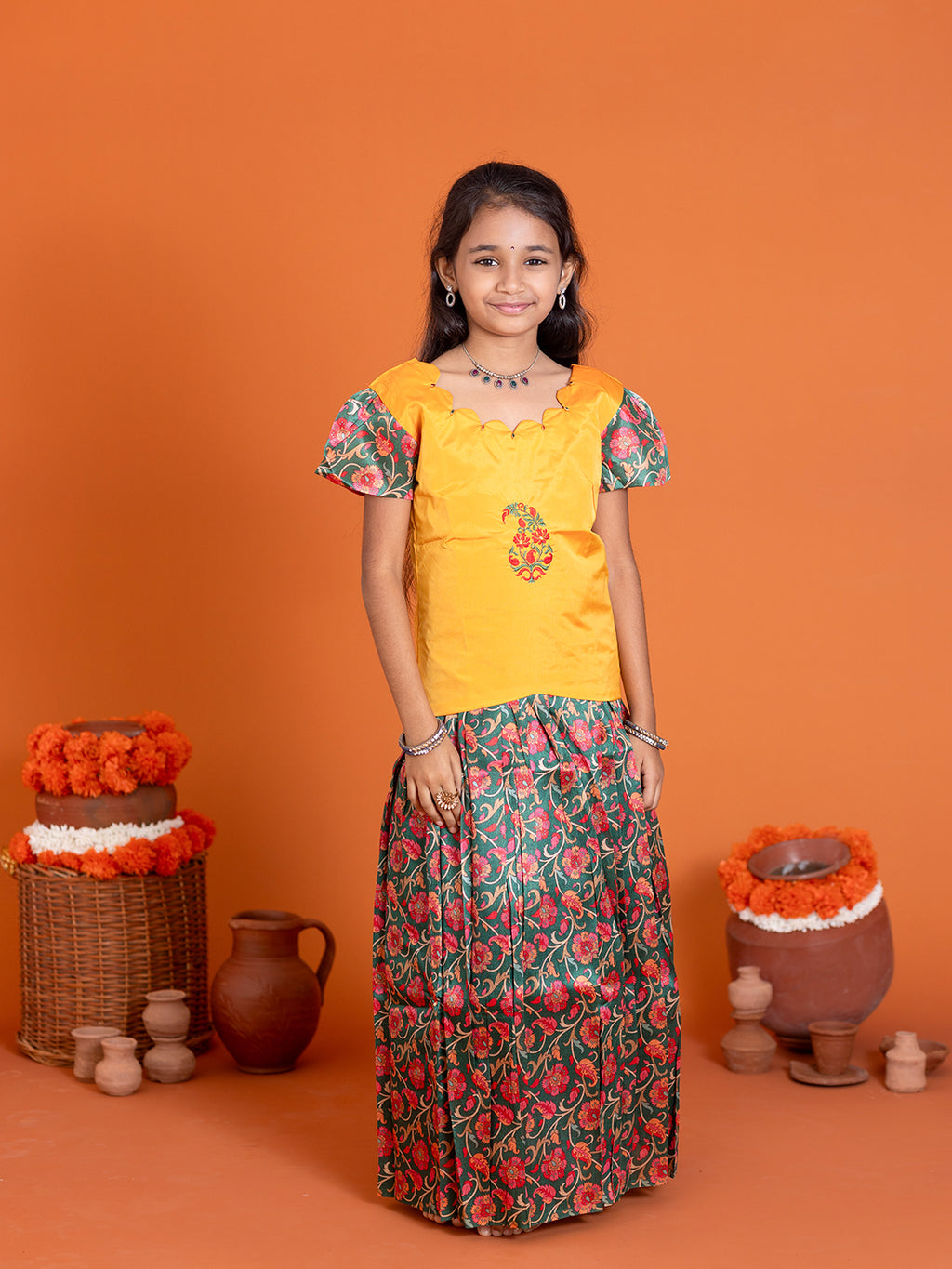Girls Pattu Pavadai Set Yellow with Green Traditional Ethnic Wear GPS31