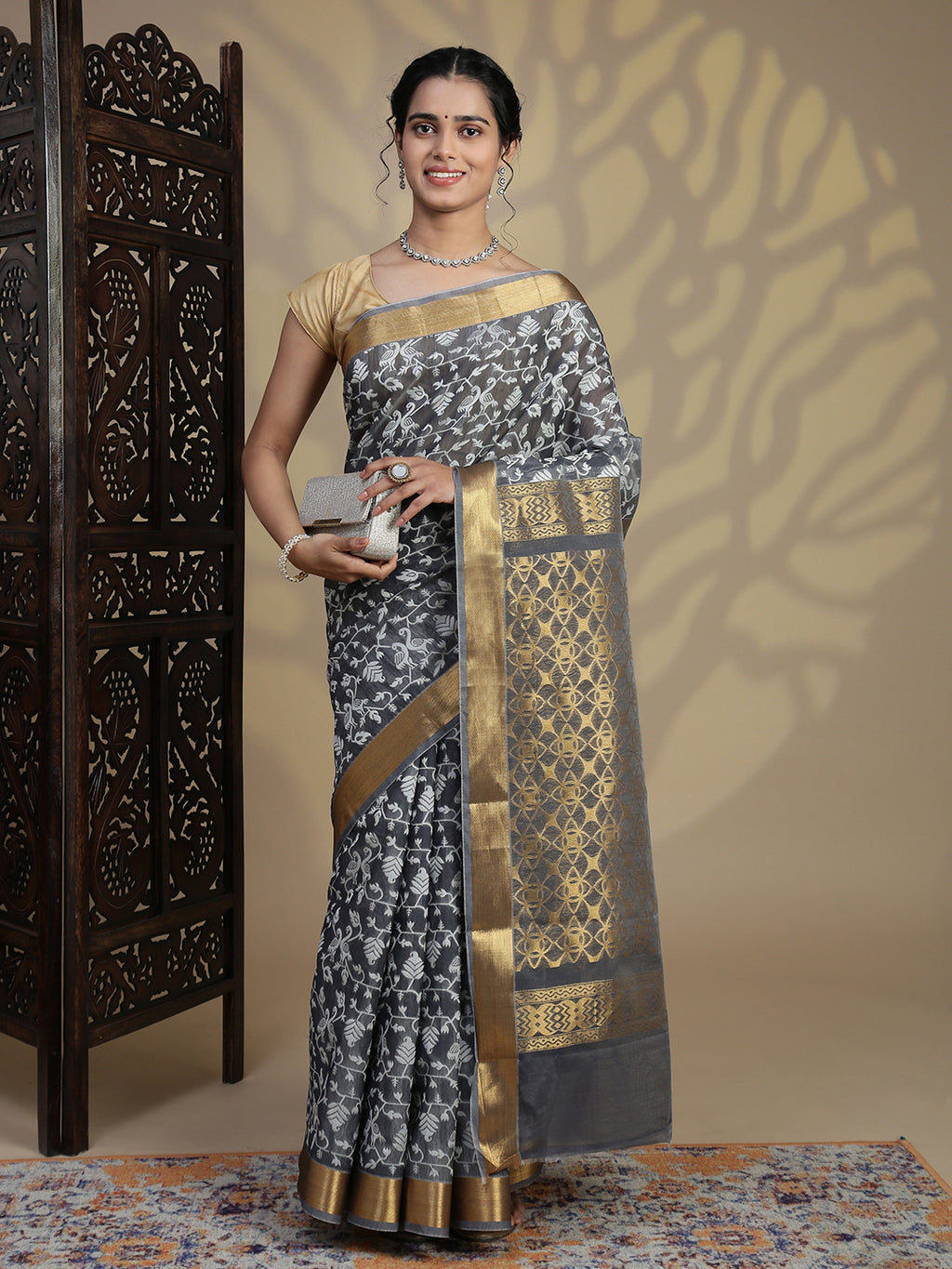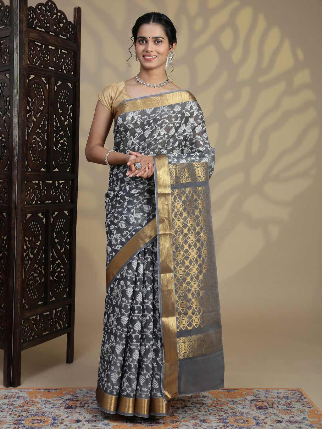 Women Grey Semi Kora Cotton Saree SK96