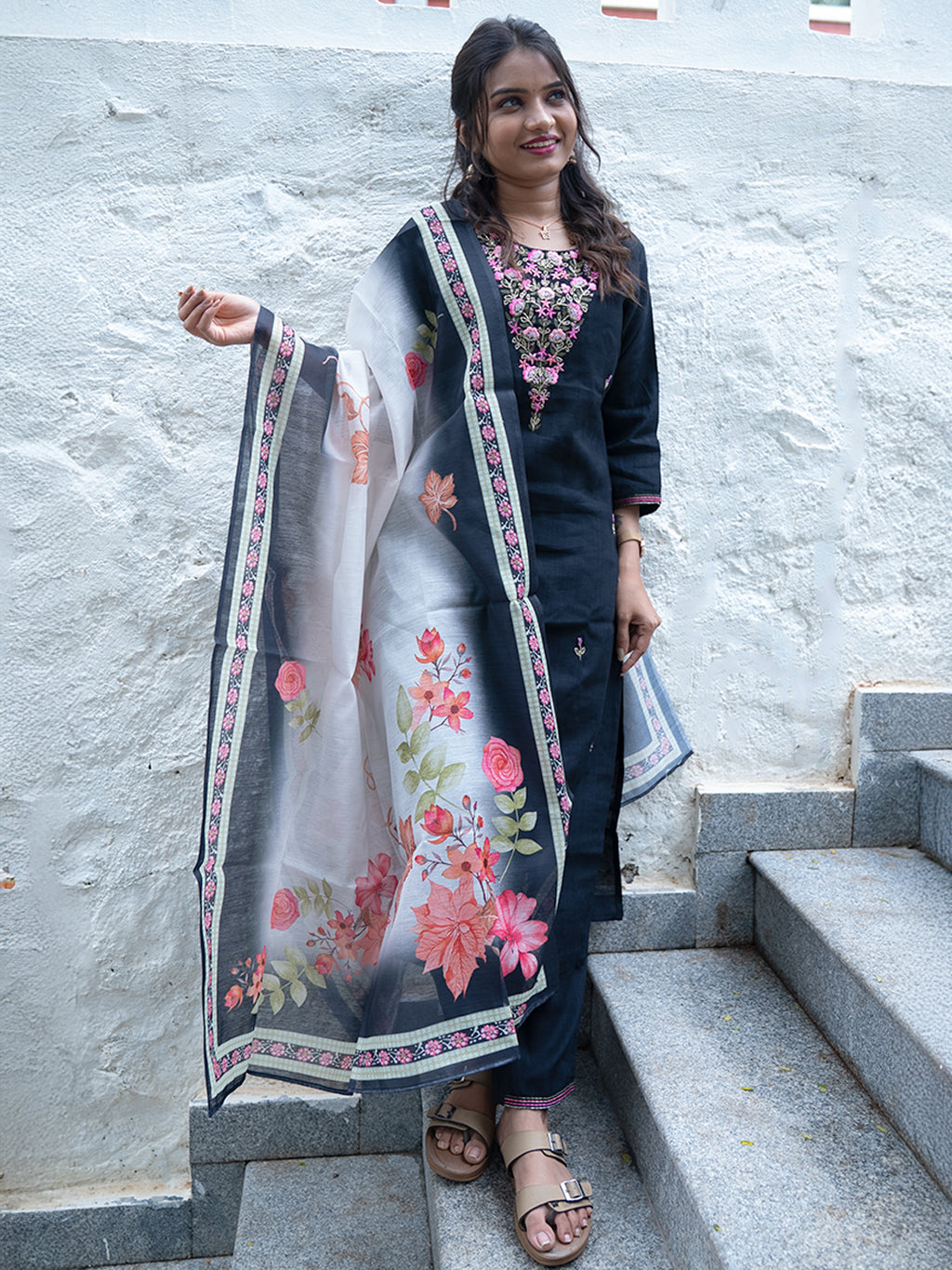 Women Black MM Silk Embroidered Kurti Set EKS106