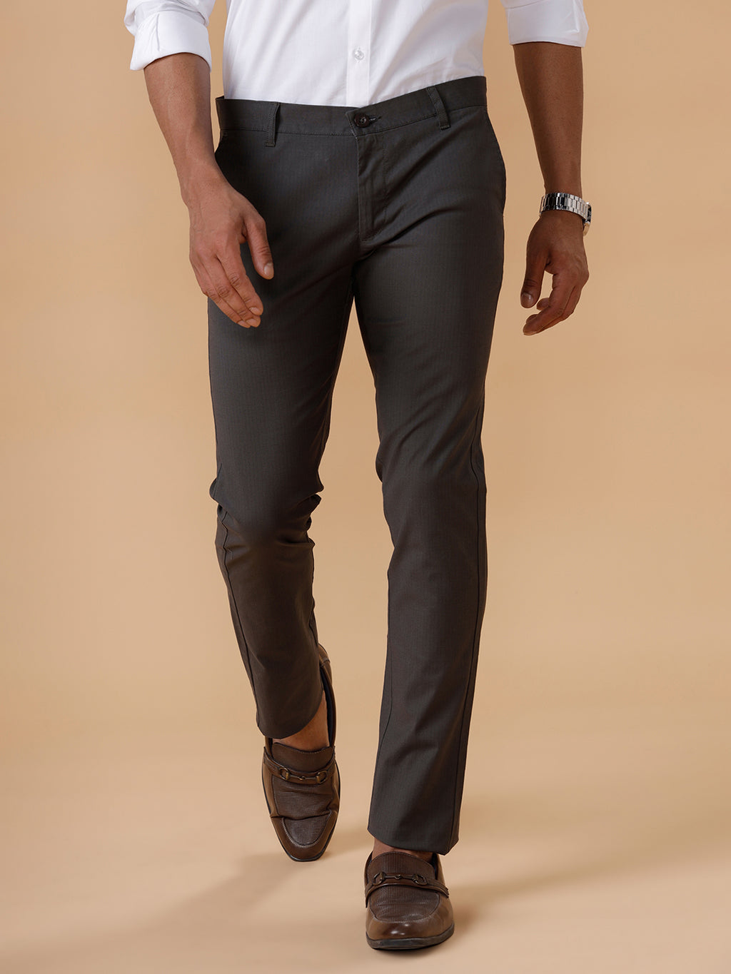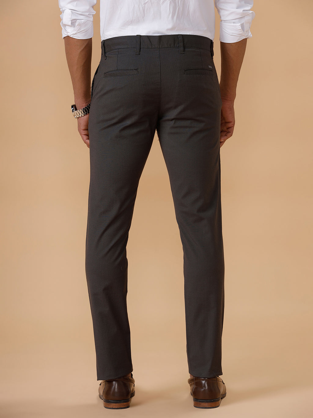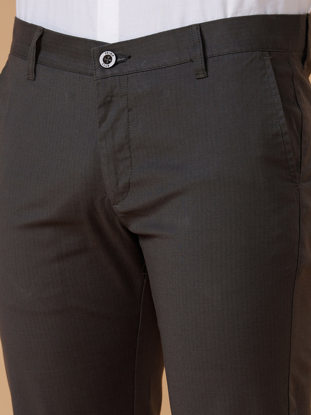 Men Cotton Smart Fit Stretch Pant Greyish Green Linox