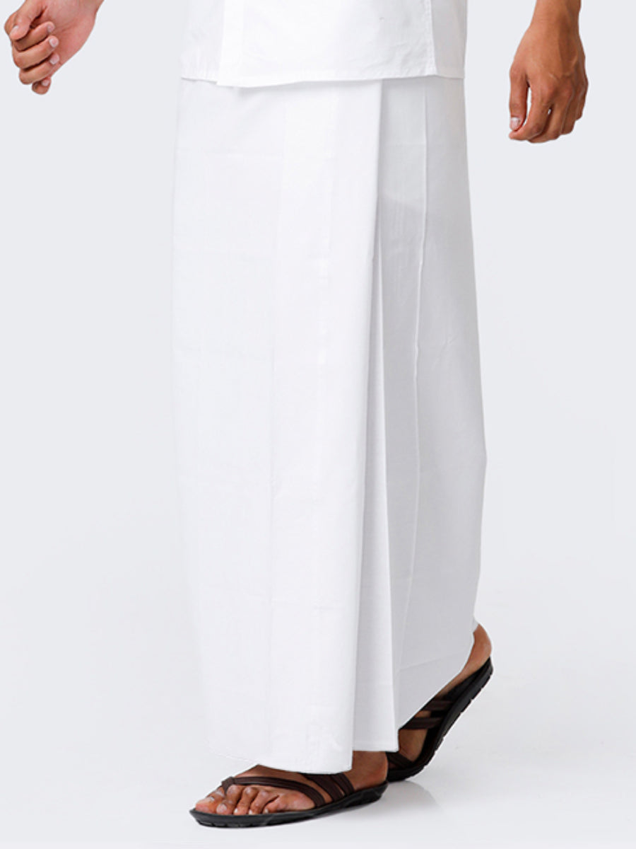 Embrace simplicity and devotion with this Men’s 100% Cotton Single Layer Stitched White Prayer Dhoti. Made from soft, breathable cotton, this dhoti ensures all-day comfort during prayers, temple visits, and religious ceremonies. The single-layer stitched design makes it easy to wear and offers a smooth, neat fit. The small border adds a subtle touch of elegance without overpowering its classic white hue. Perfect for spiritual practices, poojas, and other sacred occasions, this dhoti combines traditional charm with modern convenience.