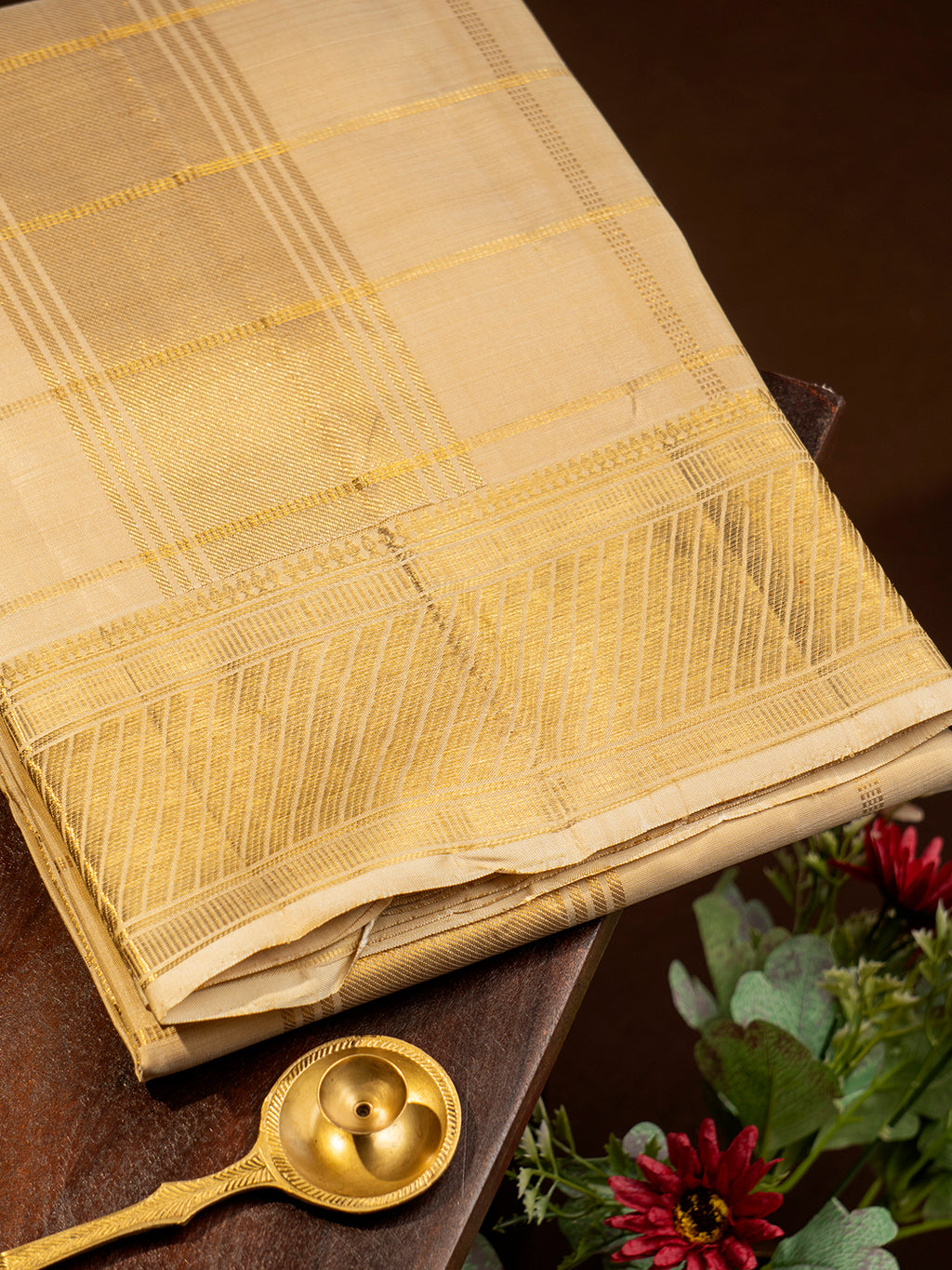 Men Premium Pure Silk Fawn Dhoti & Towel Set with 4" inch Gold Jari Border Amirtham