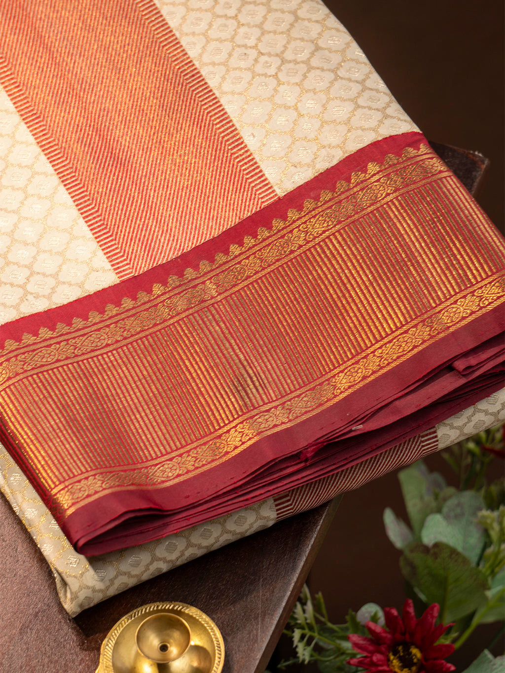 - Border Design: Beautiful 2-gram gold coating jari border adds a royal and festive touch.