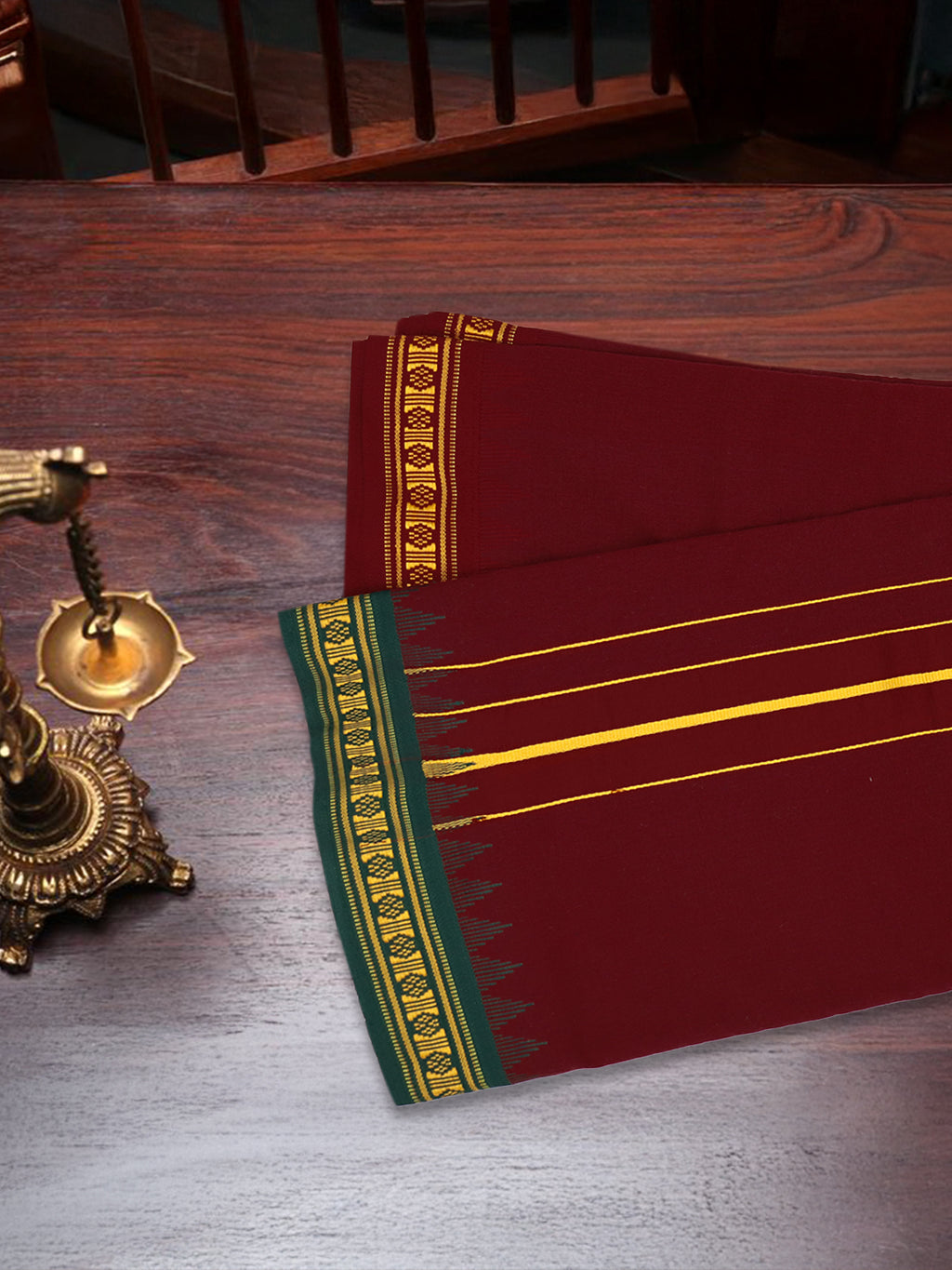 Men 100% Cotton Fancy Border Panchakacham with Angavasthram Maroon(9+5)