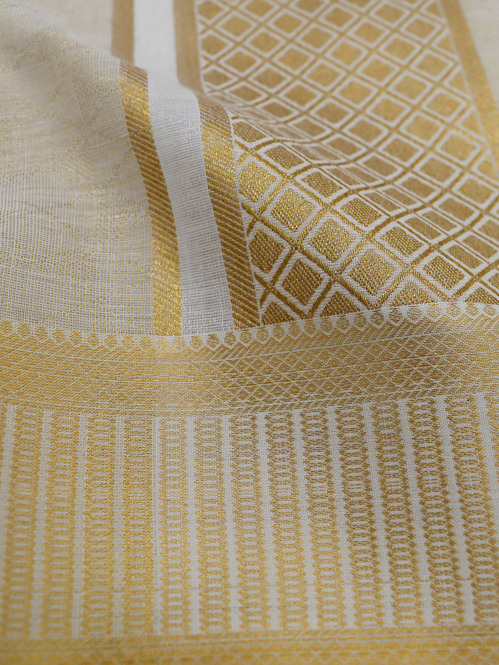 Make every traditional occasion truly special with our Tissue Panchakacham, crafted from luxurious tissue fabric that exudes a radiant, festive charm. Known for its subtle shimmer and rich texture, this panchakacham brings a royal elegance to your traditional attire, making it perfect for weddings, temple ceremonies, and grand celebrations.