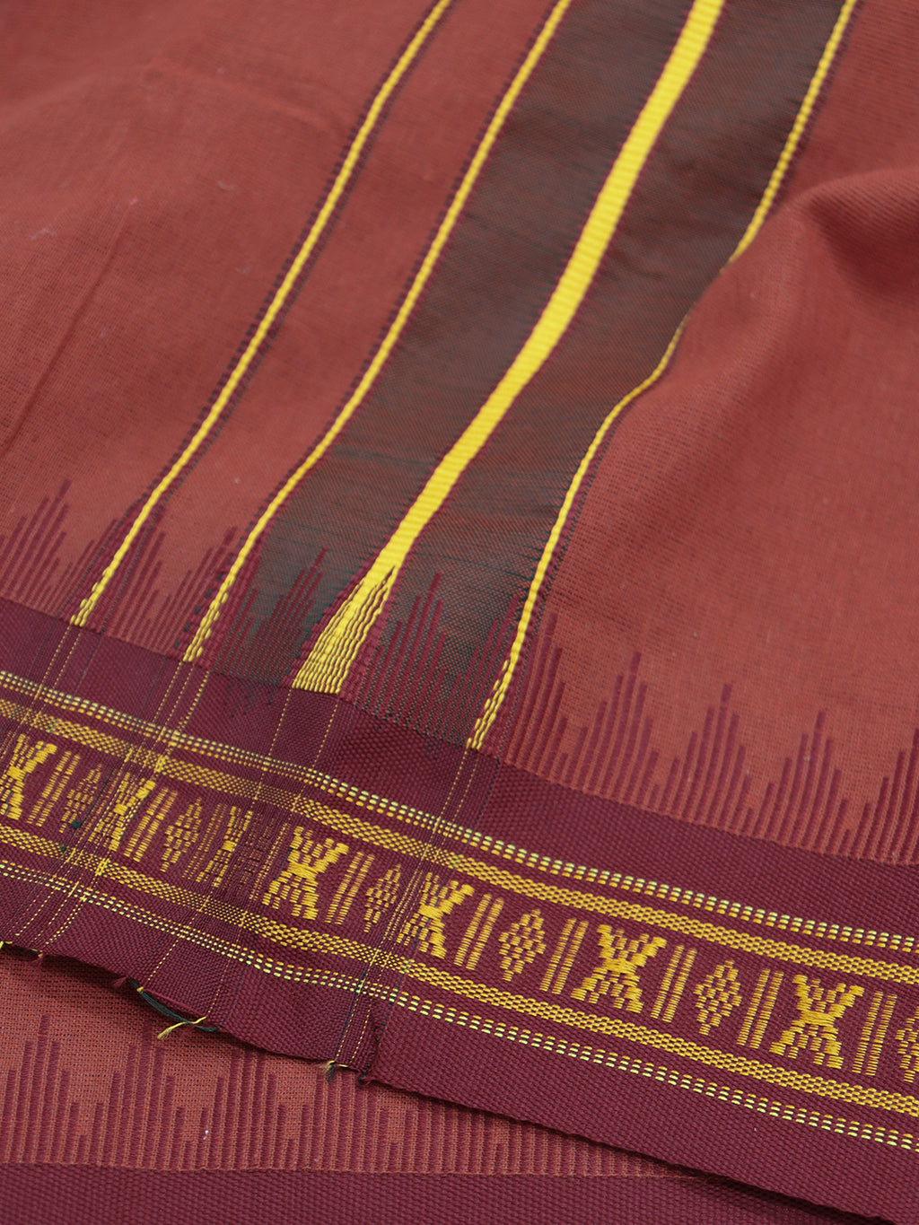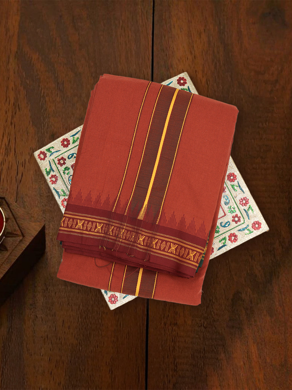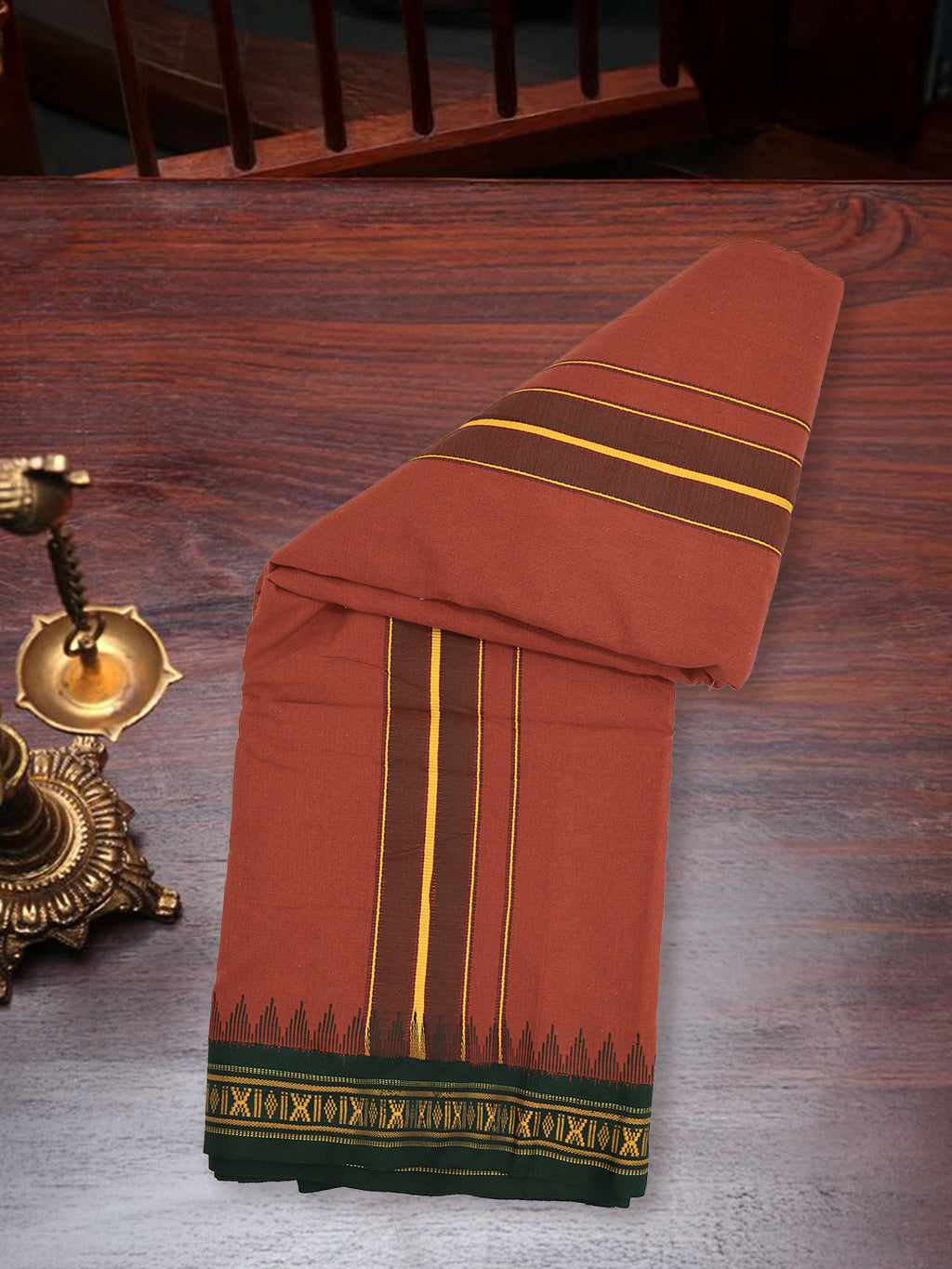Men 100% Cotton Fancy Border Panchakacham with Angavasthram Kaavi(9+5)