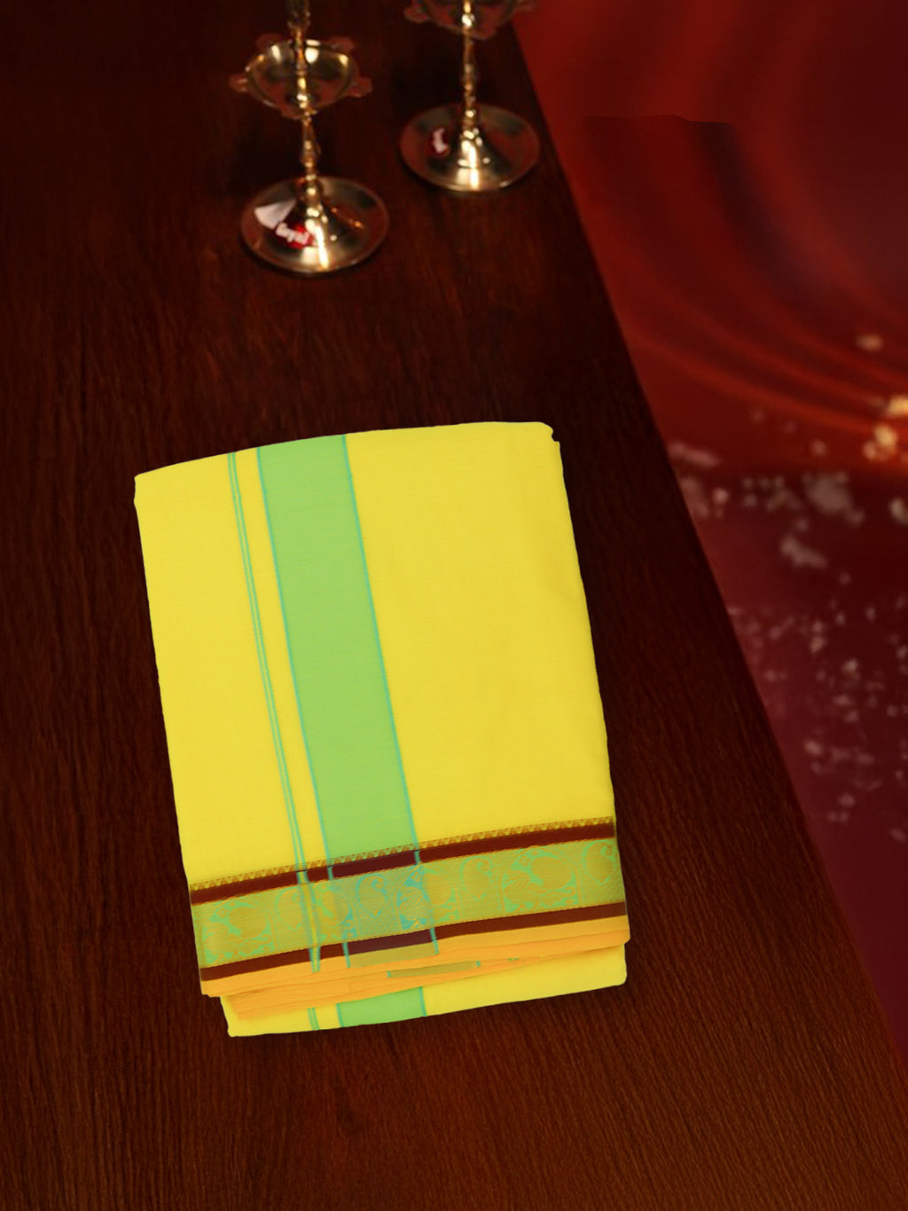 Men 100% Cotton Panchakacham with Angavasthram Set Adinath Yellow (9+5)