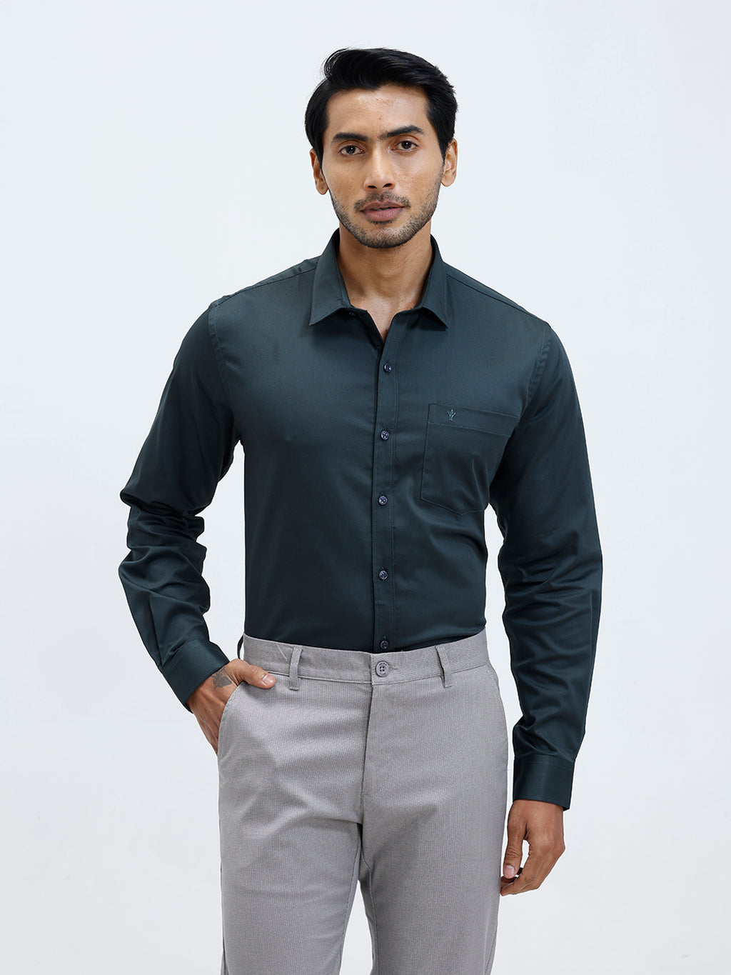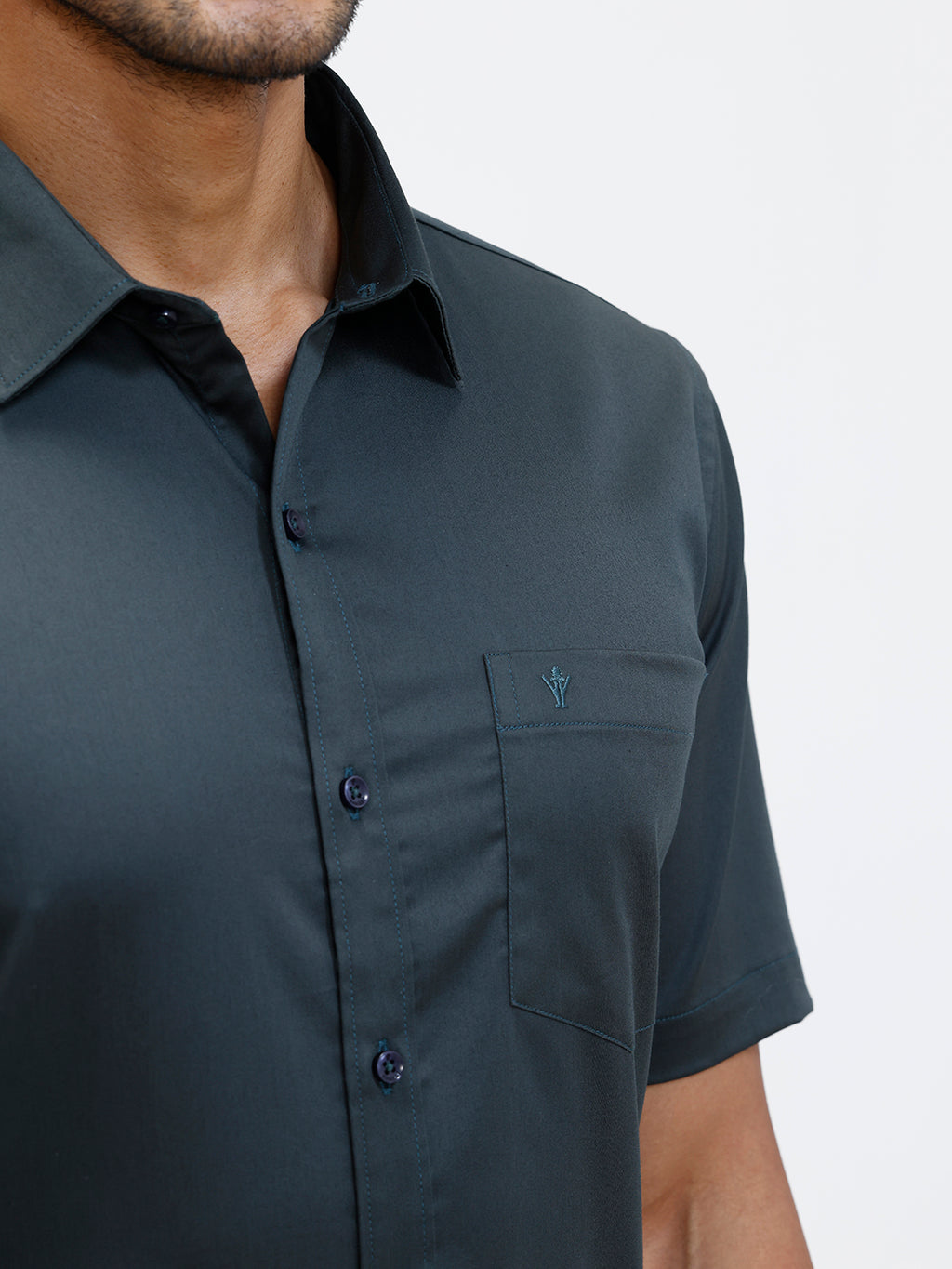 Men Cotton Blend Shirt Dark Green T53 ACT2