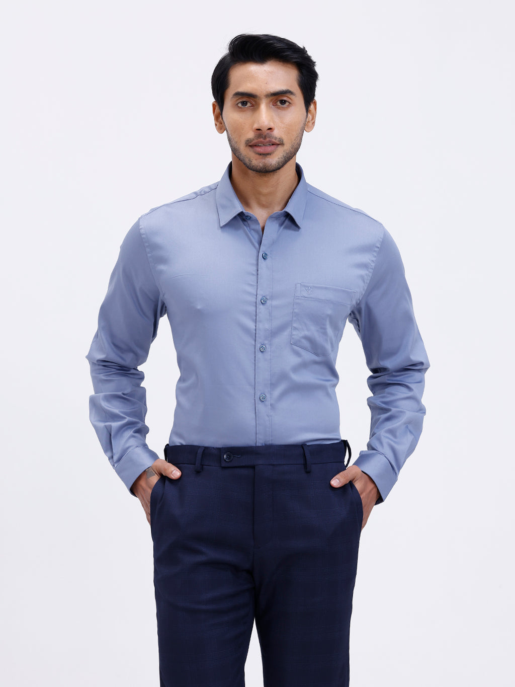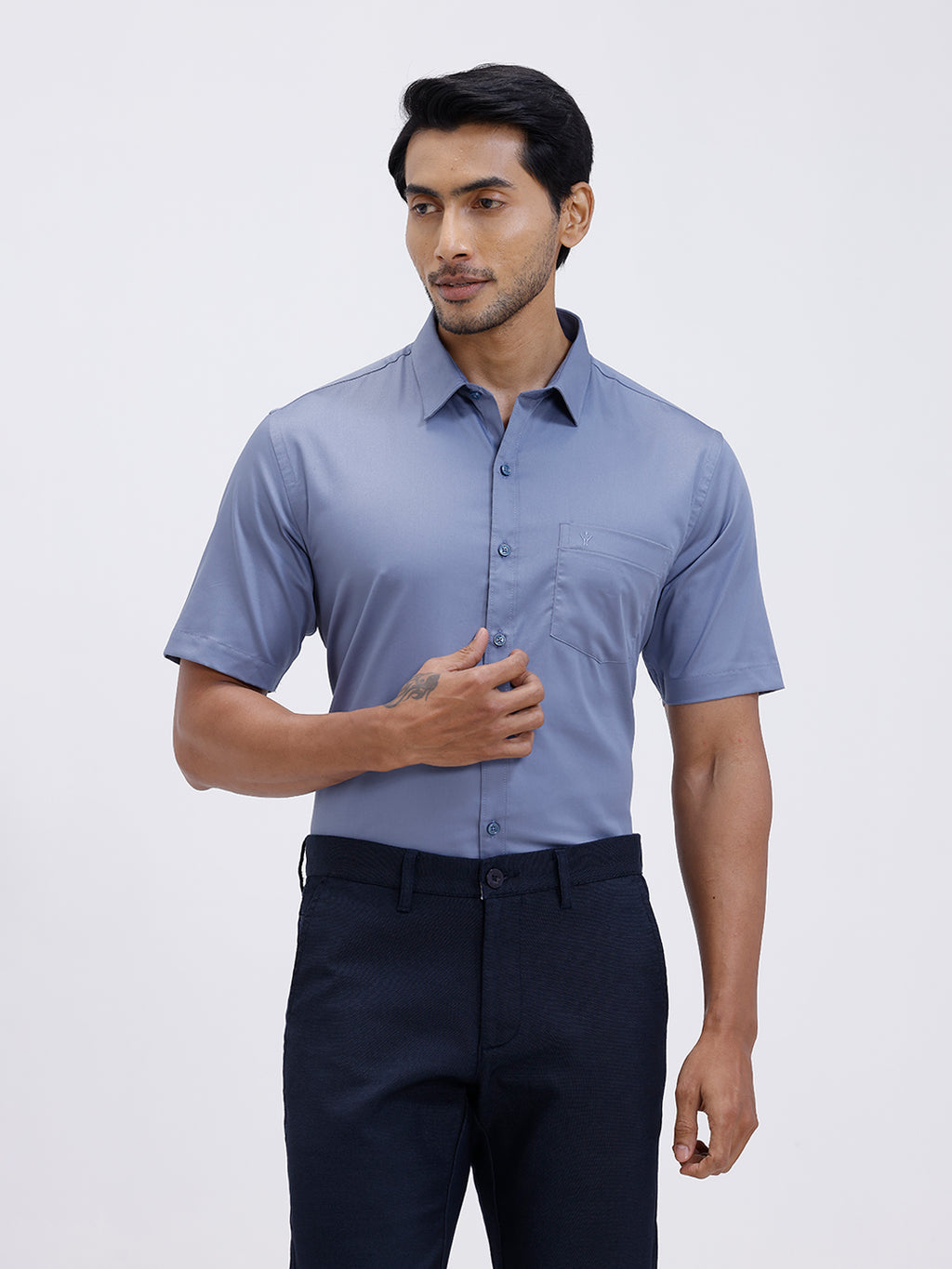 Men Cotton Blend Shirt Greyish Blue T53 ACT7