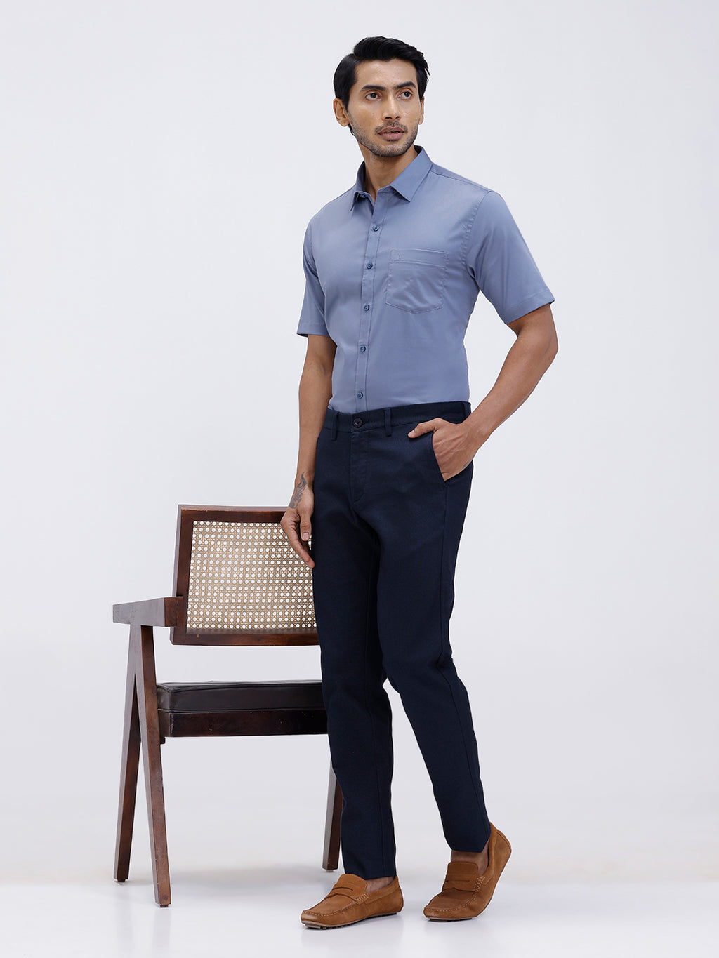 Experience all-day comfort with our Cotton Blend Shirt, crafted from a soft, breathable mix of natural cotton and durable synthetic fibers. This lightweight fabric offers the perfect balance of softness, stretch, and wrinkle resistance—making it ideal for both casual wear and everyday work outfits.
