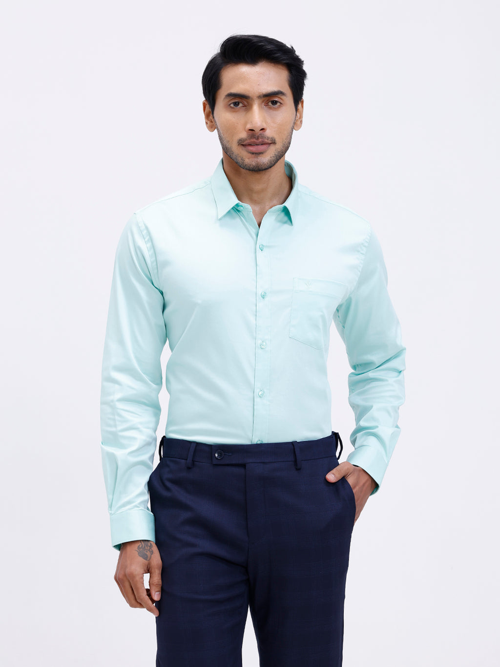 Men Cotton Blend Shirt Snowmint Green T53 ACT10