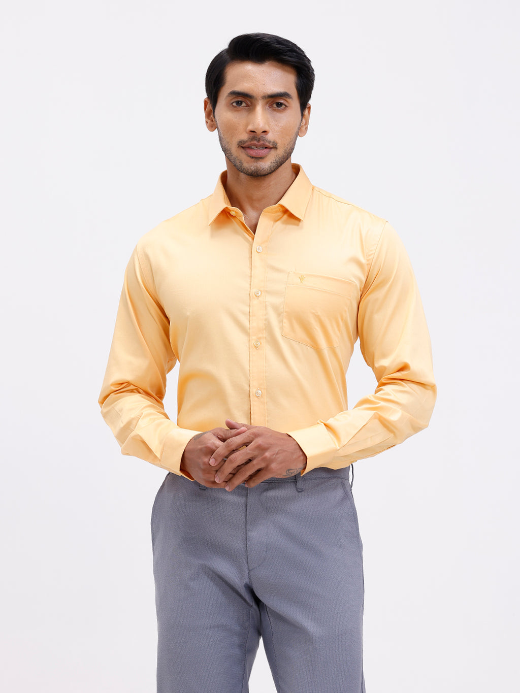 Men Cotton Blend Shirt Yellowish Orange T53 ACT8