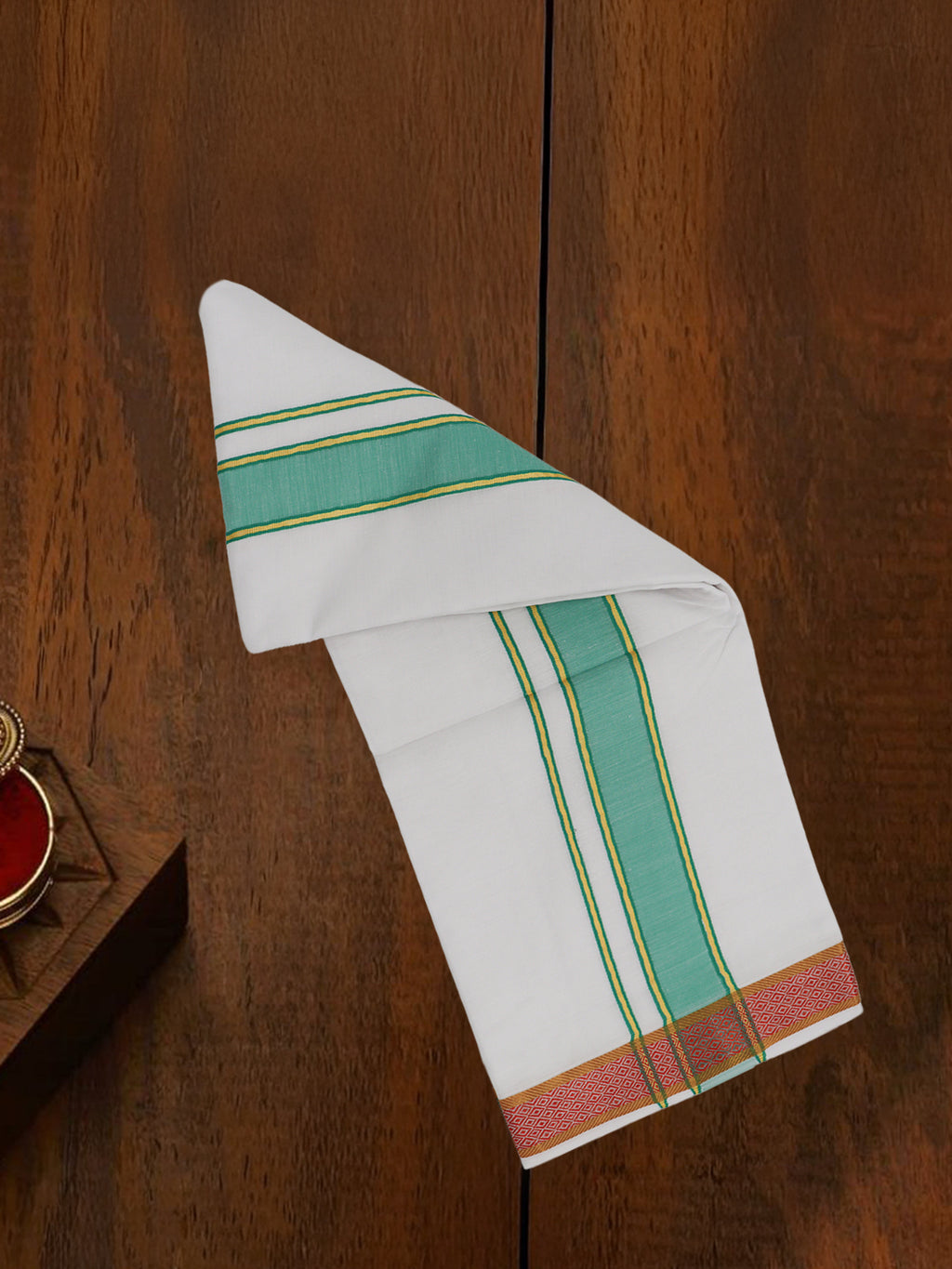 Men Cotton Green Fancy Border Panchakacham with Angavasthram Keerthisena (9+5) KS01