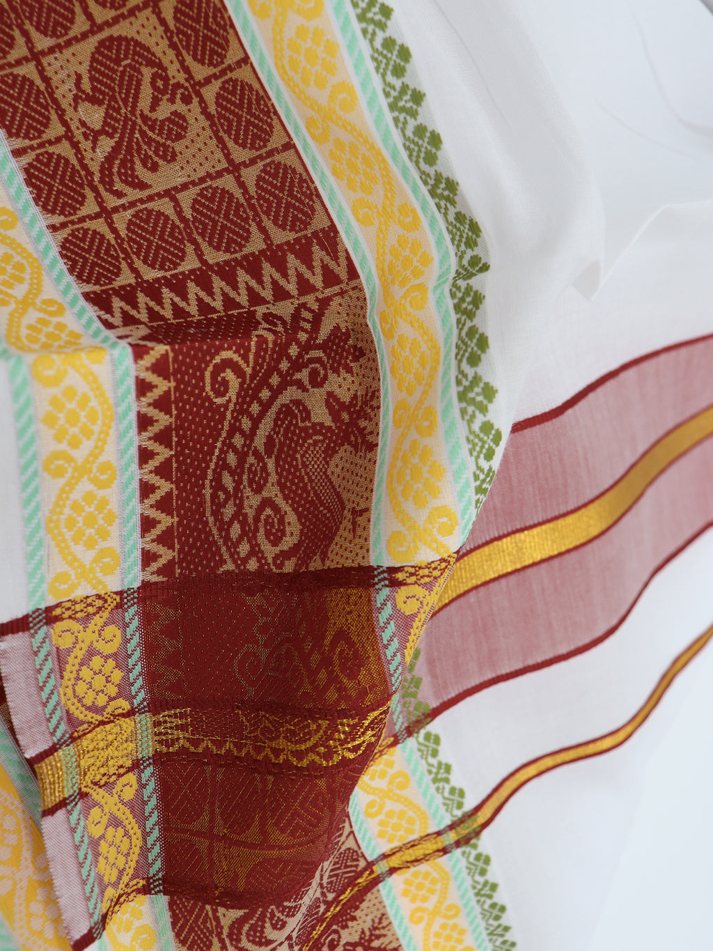 Men Cotton Maroon Fancy Border Panchakacham with Angavasthram Vishvadeva (9+5) VD04