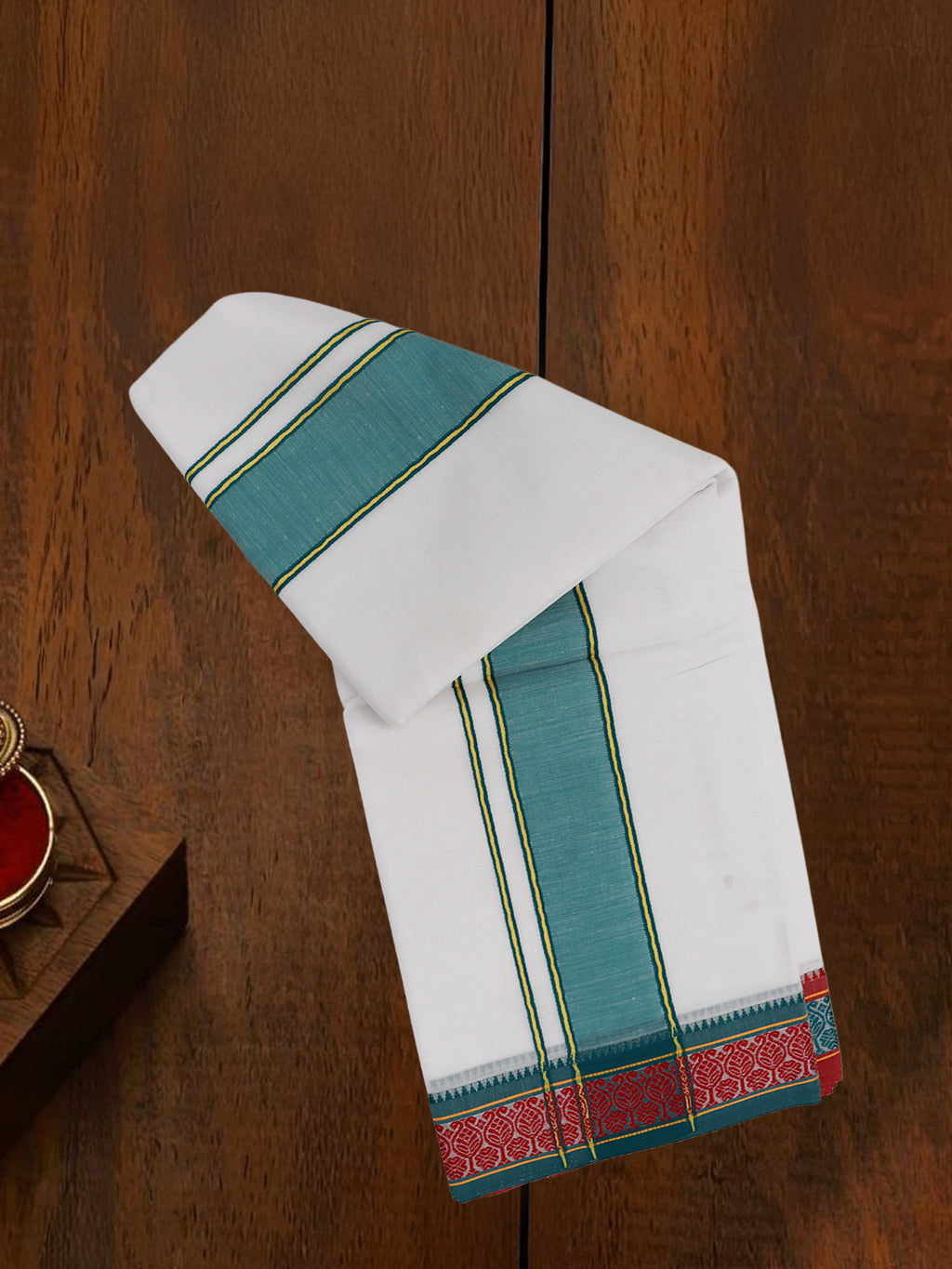 Men Cotton Pine Green Fancy Border Panchakacham with Angavasthram Keerthisena (9+5) KS06