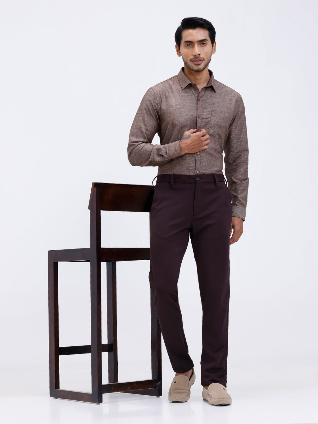Men Cotton Rich Full Sleeve Shirt Brown Dobby T59 AIT4