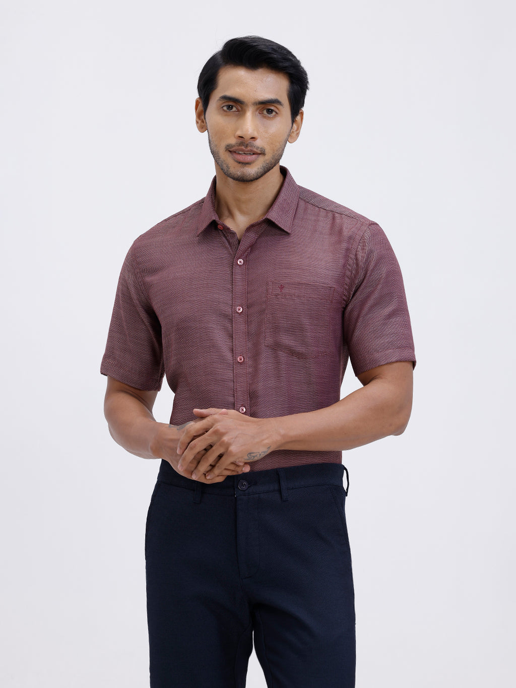 Men Cotton Rich Half Sleeve Shirt Maroon Red Dobby T59 AIT2