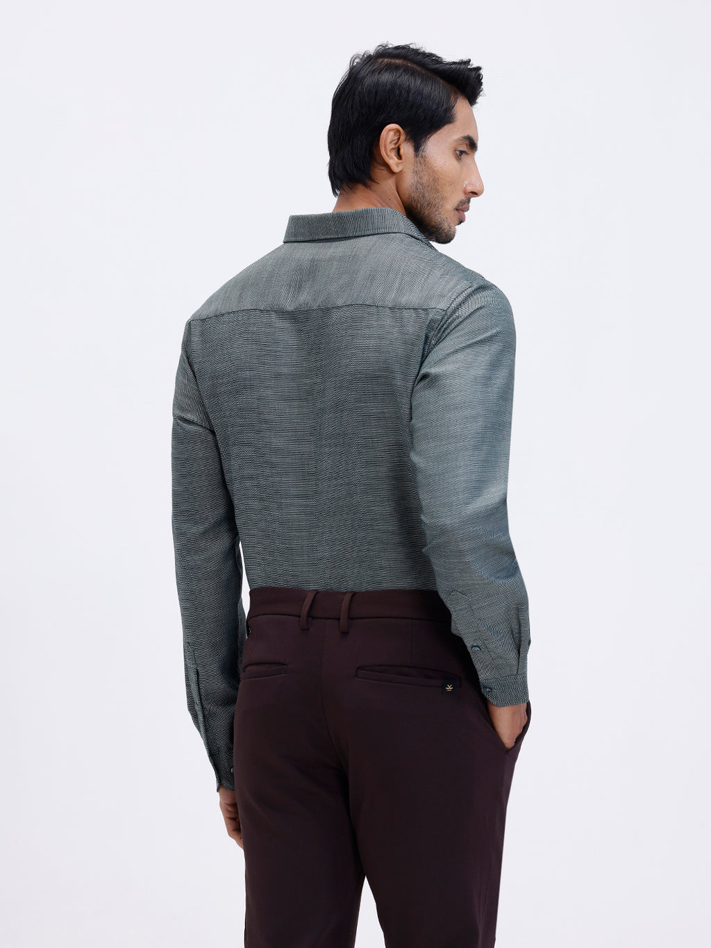 Men Cotton Rich Full Sleeve Shirt Green Dobby T59 AIT3