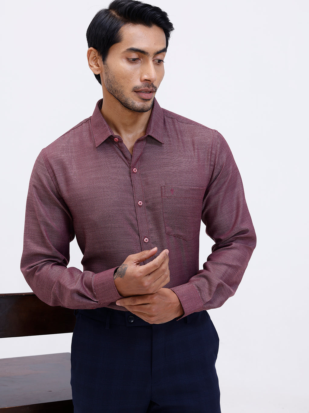 Men Cotton Rich Full Sleeve Shirt Maroon Red Dobby T59 AIT2