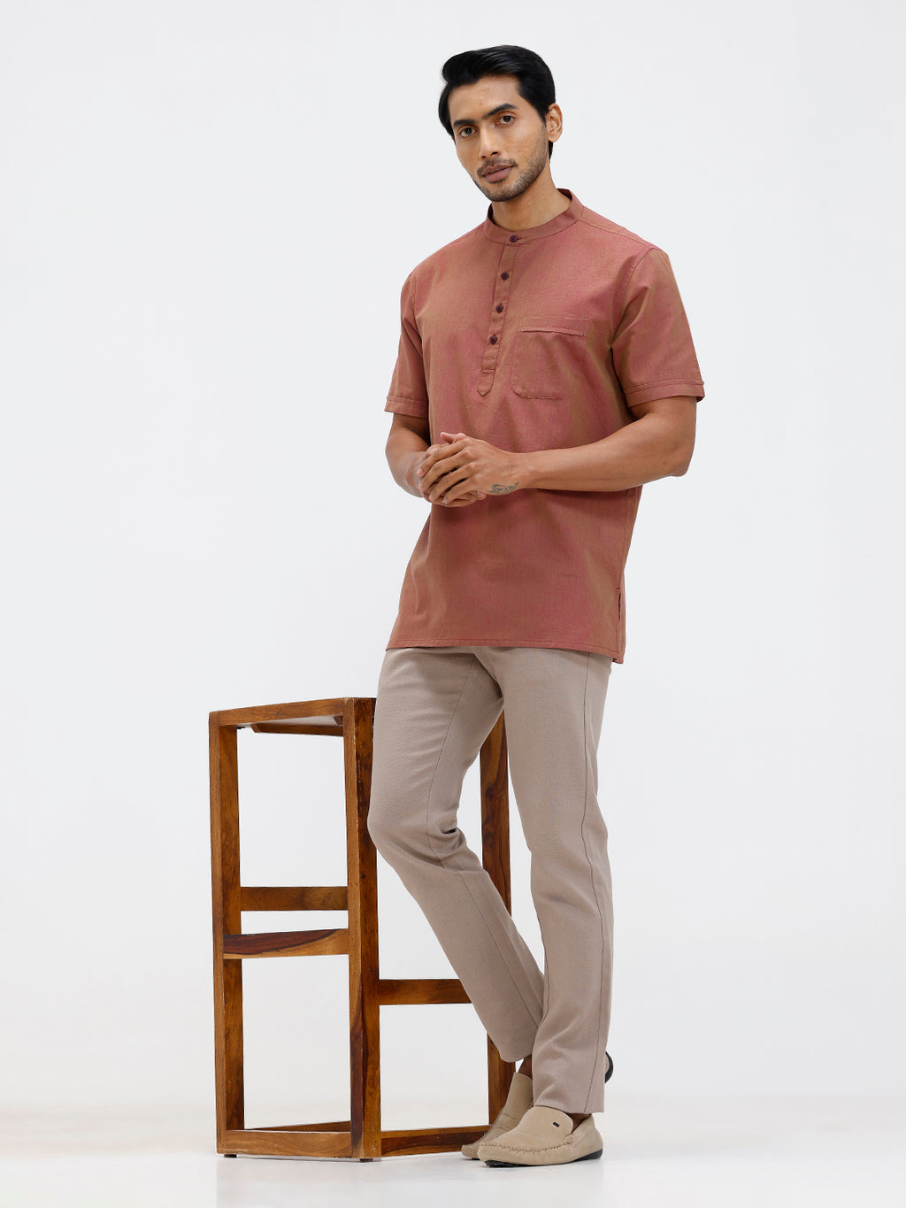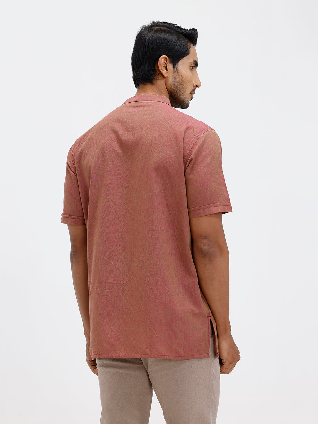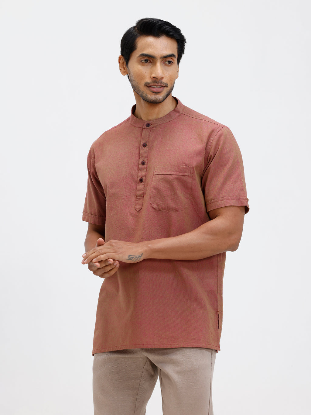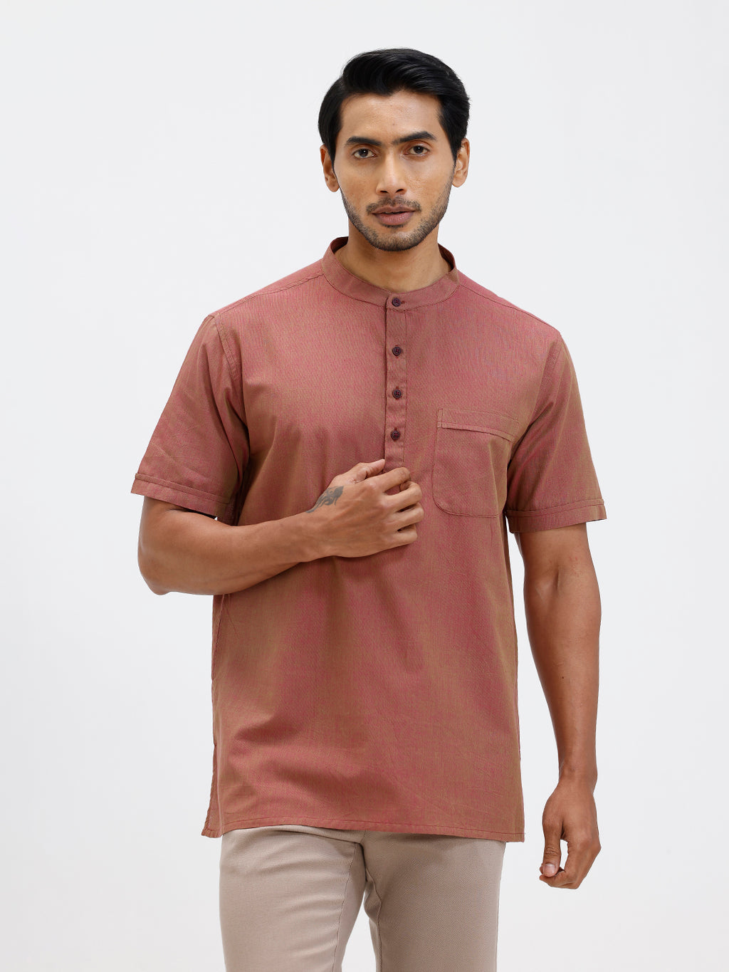Men Cotton Short Length Plain Pocket Kurta Greenish Pink PC25