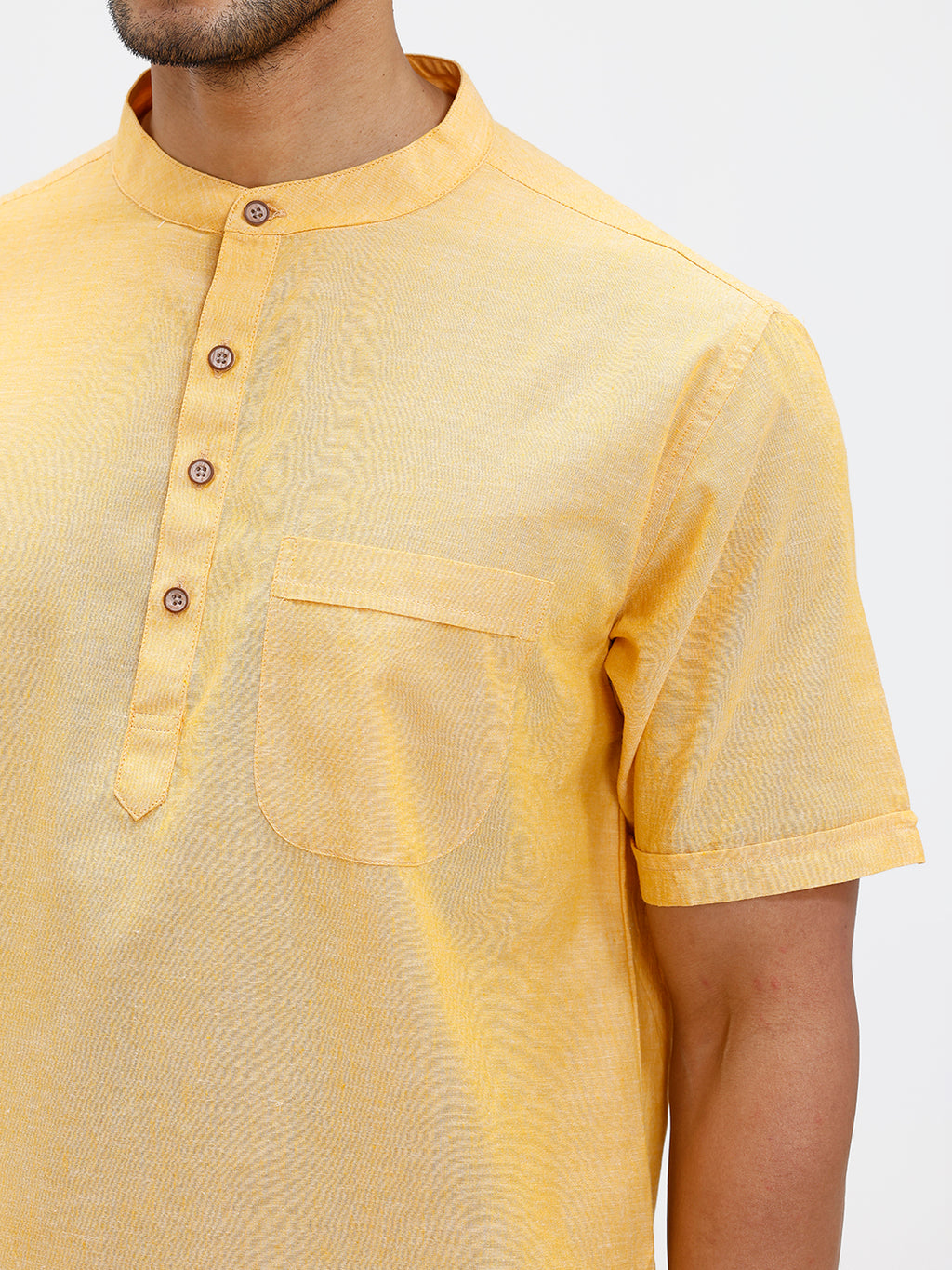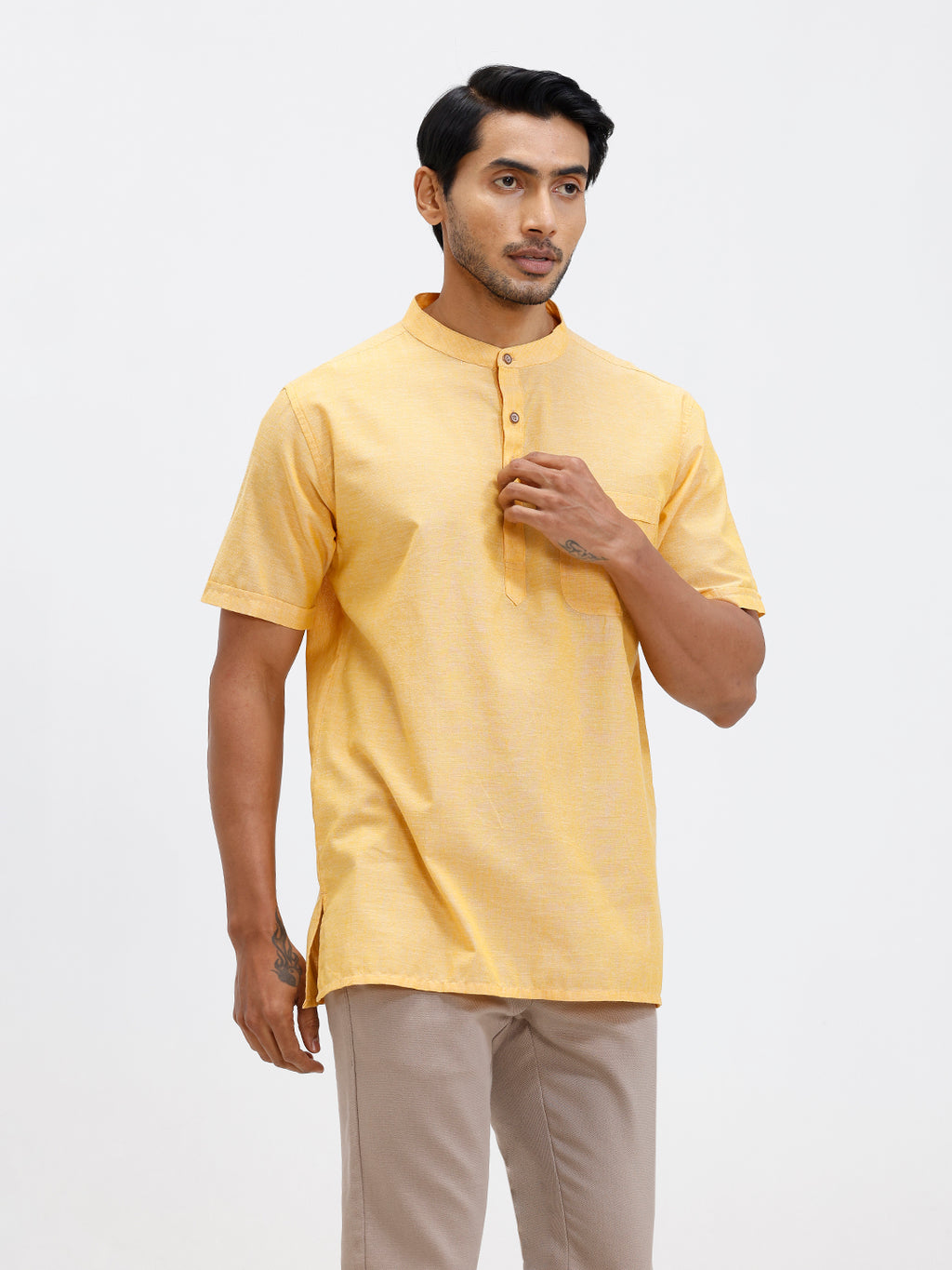 Men Cotton Short Length Plain Pocket Kurta Pale Orange PC31
