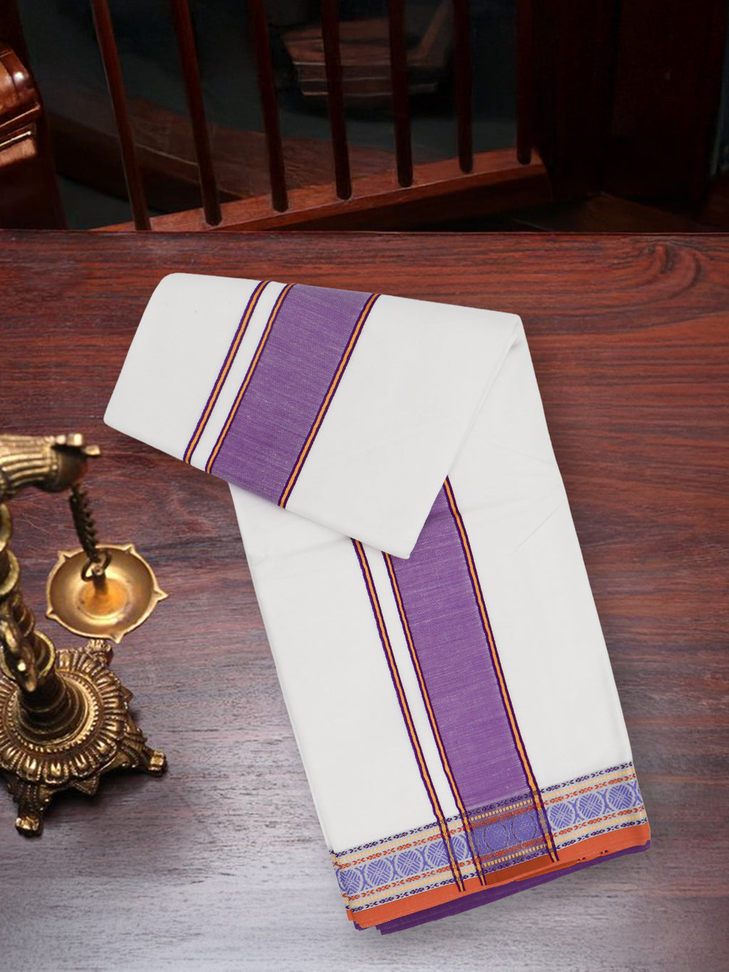 Men Cotton Violet Fancy Border Panchakacham with Angavasthram Keerthisena (9+5) KS05