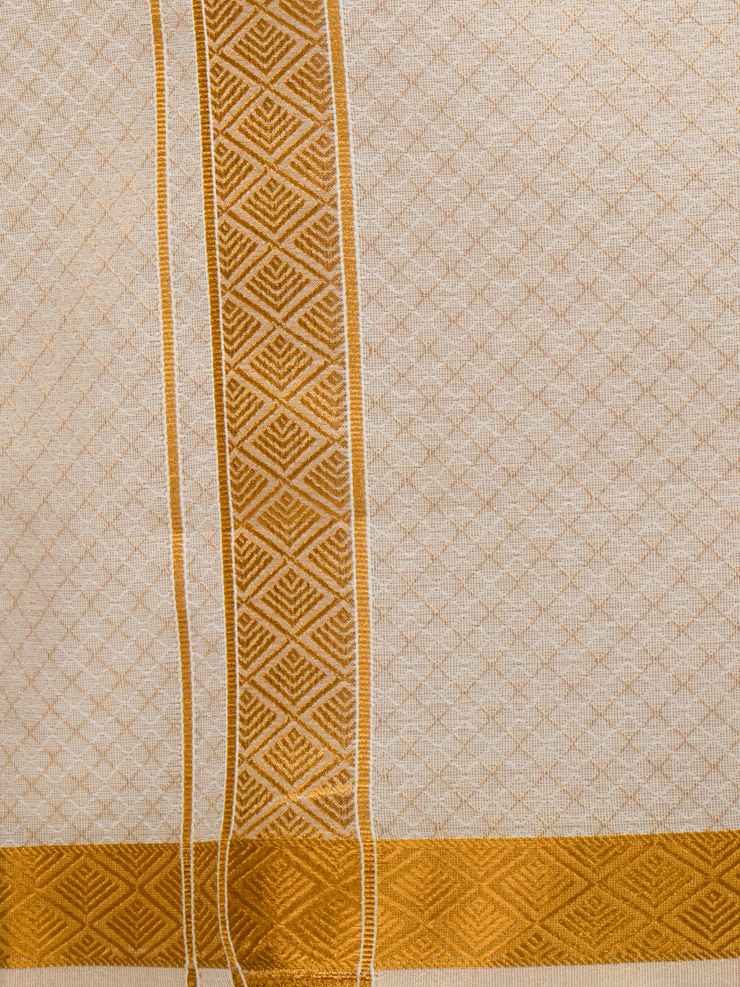 Men Gold Tissue Jacquard Half Sleeves Shirt with Matching Dhoti Set GD13