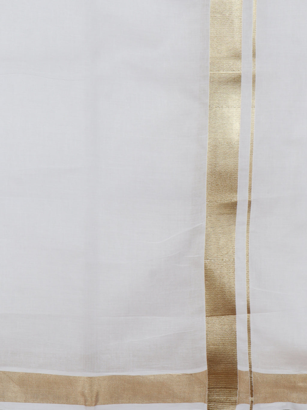 Men 100% Cotton Double Layer White Dhoti with Gold Border