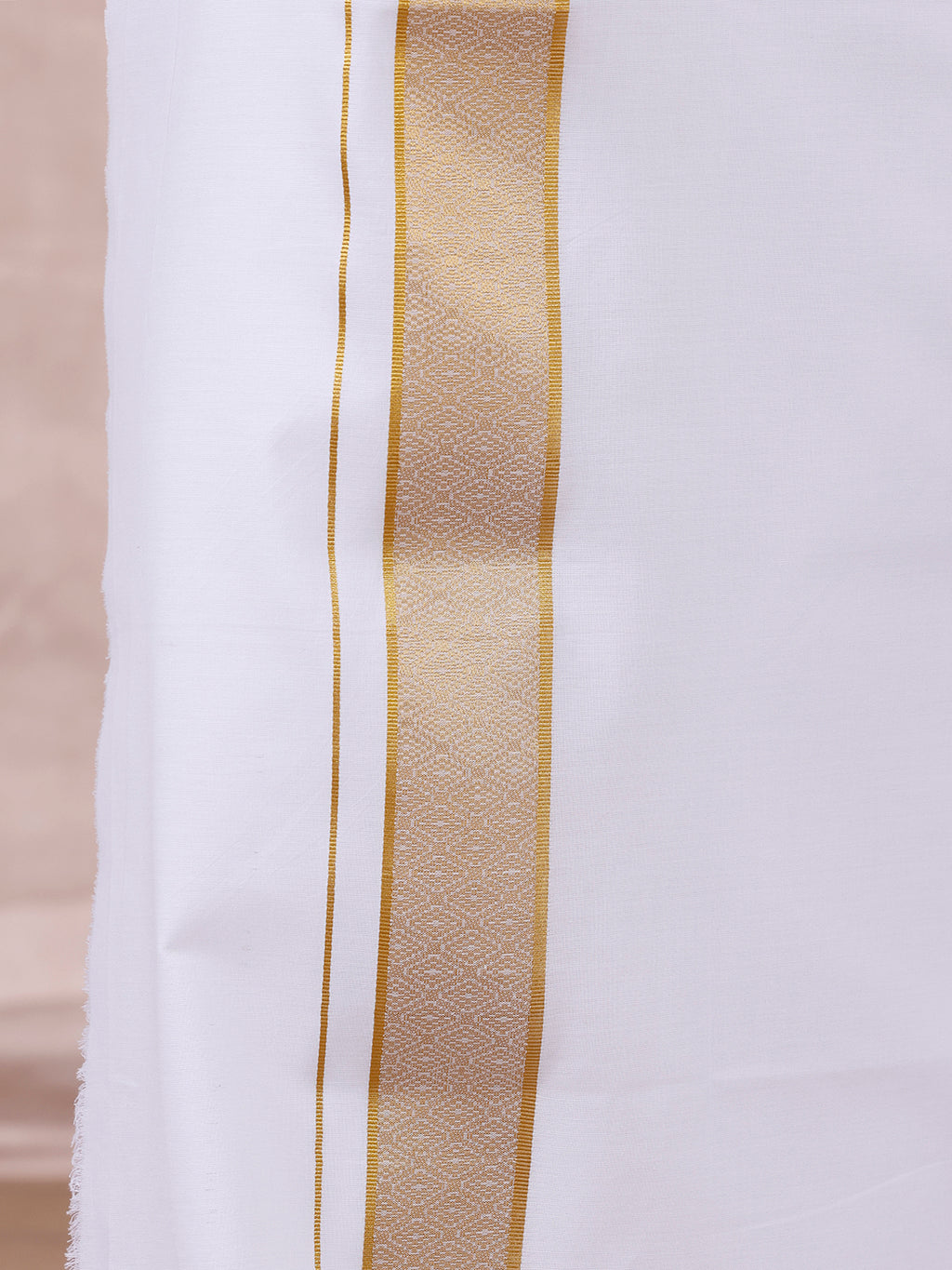 Men 100% Cotton Single Layer White Dhoti with Gold Jari Border Aura 306