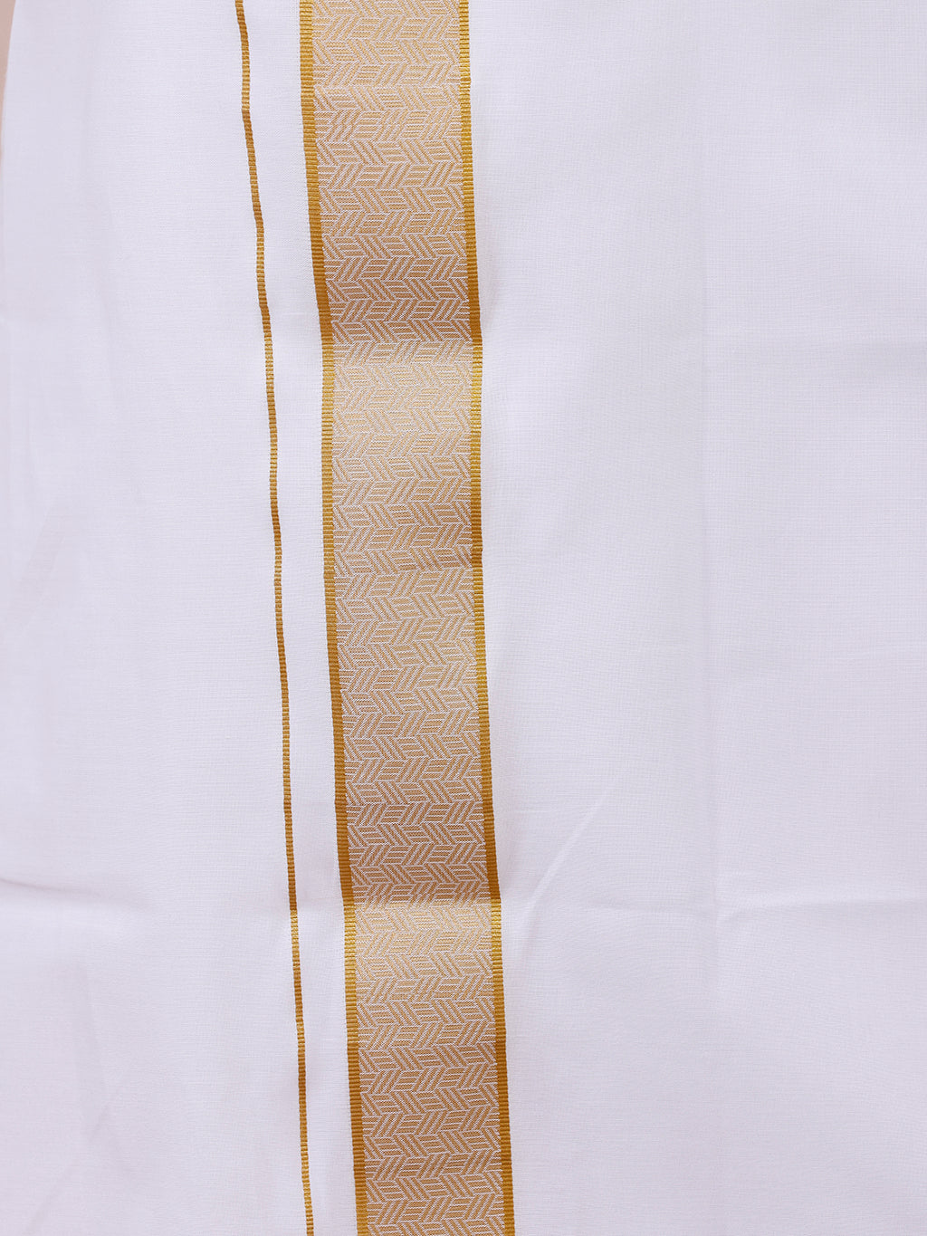 Men 100% Cotton Single Layer White Dhoti with Gold Jari Border Aura 368